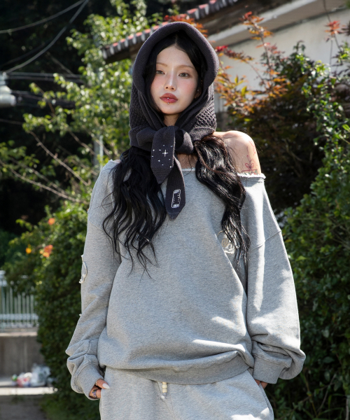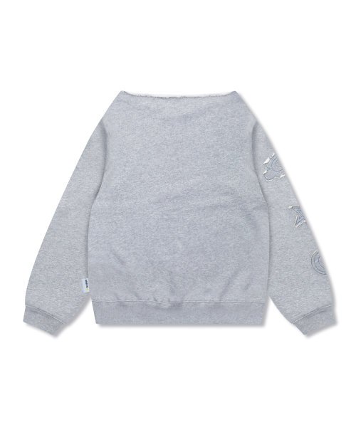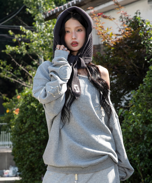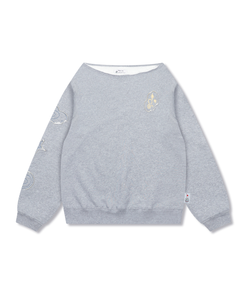 WXT067 구르구르 아플리케 원숄더 맨투맨 (MELANGE GRAY)