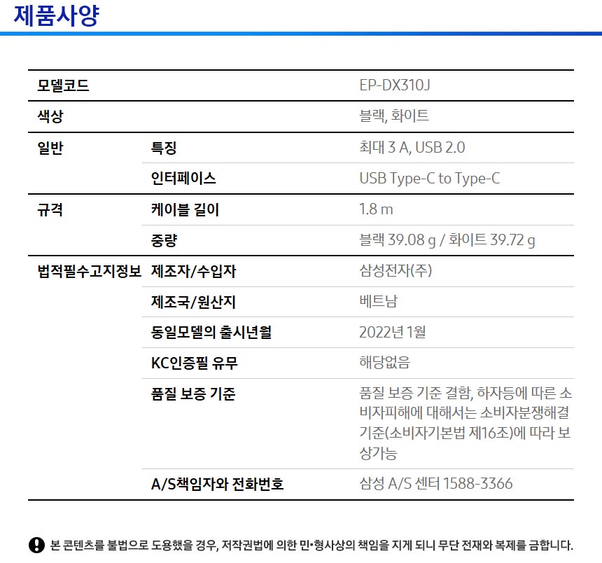 갤럭시 25W 초고속 충전 C타입 케이블 EP-DX310