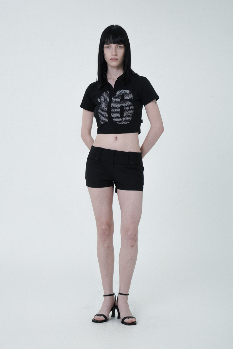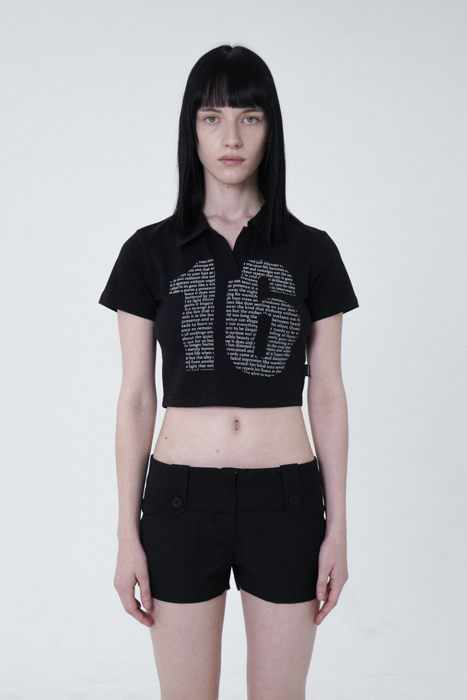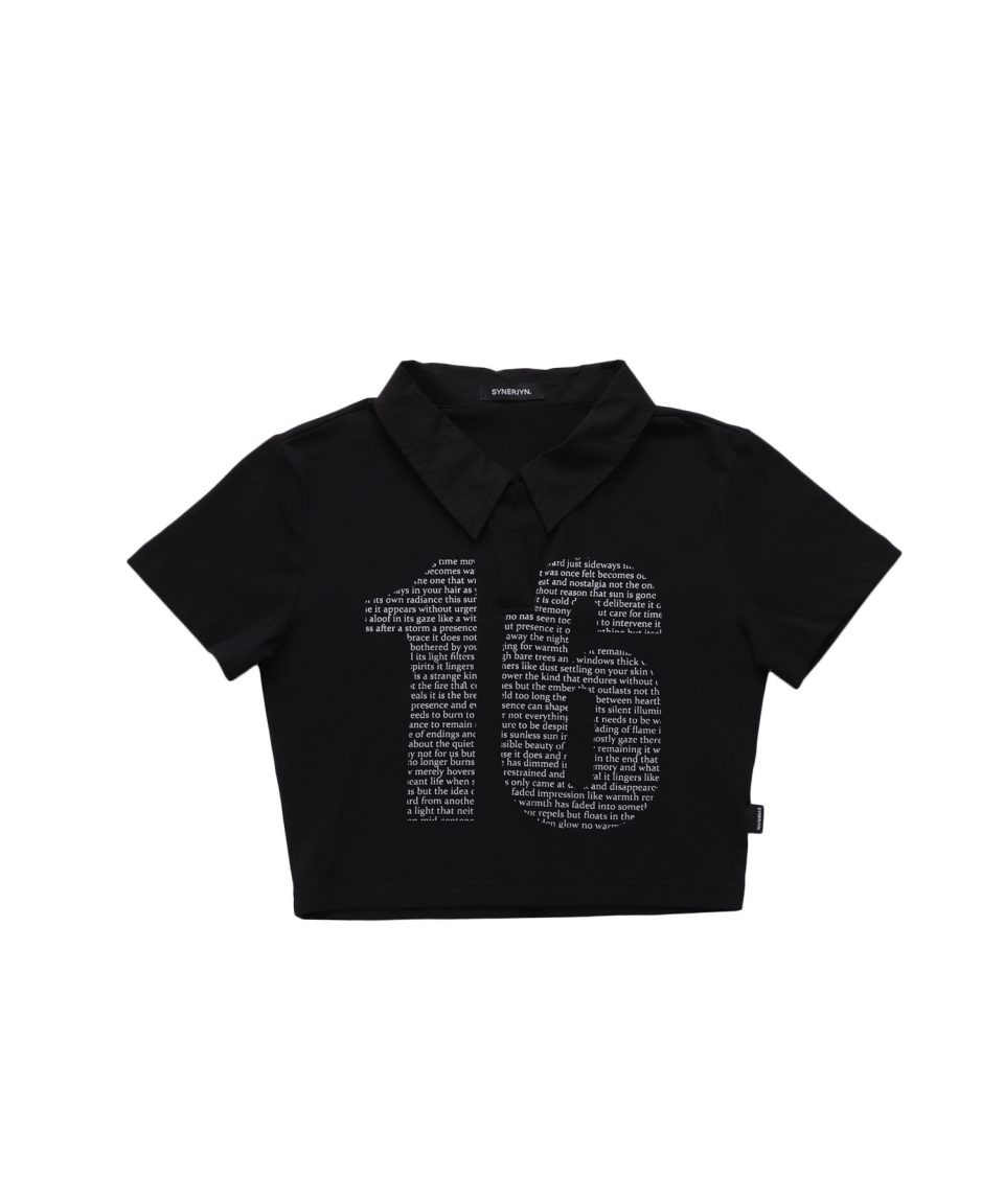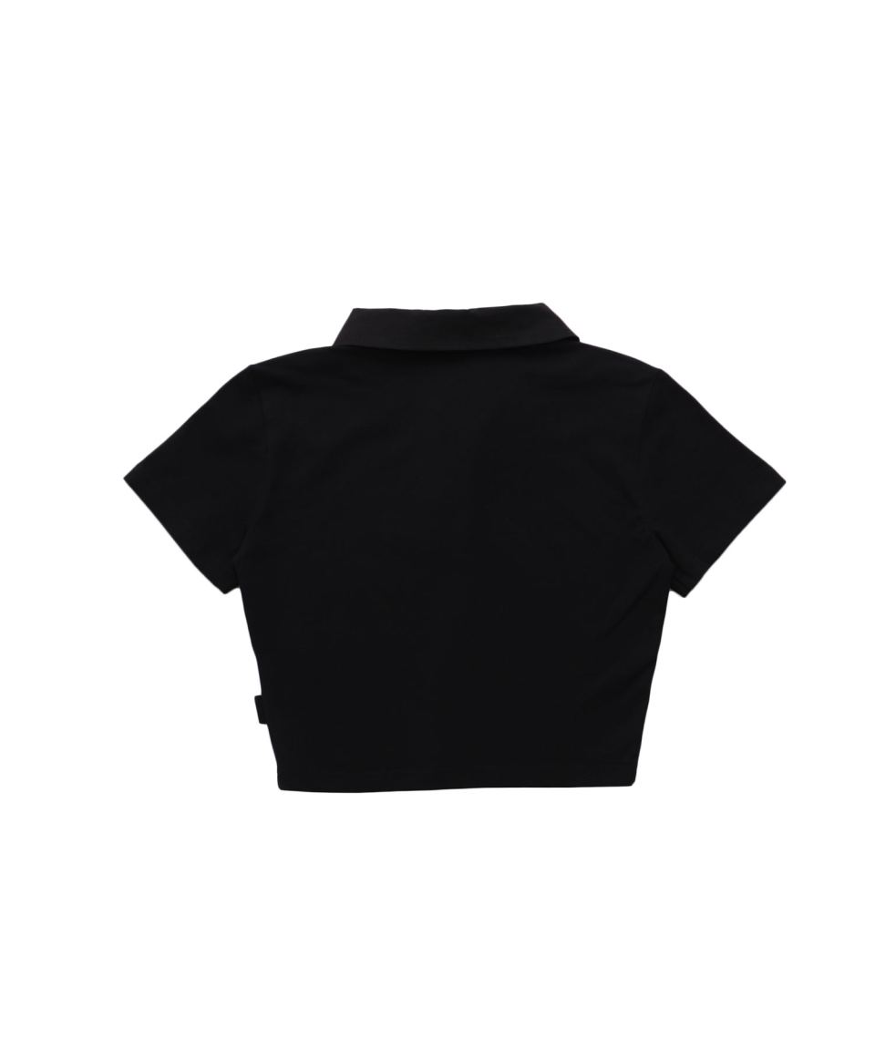 - 크롭 기장의 프린팅 반팔 카라 티셔츠