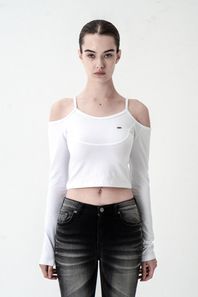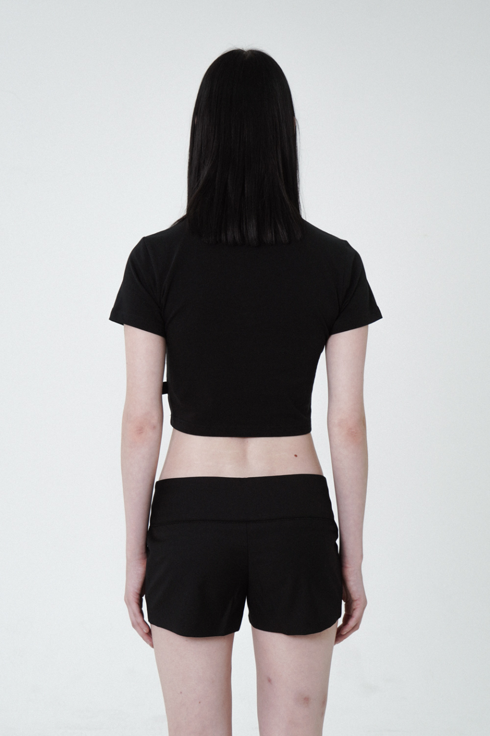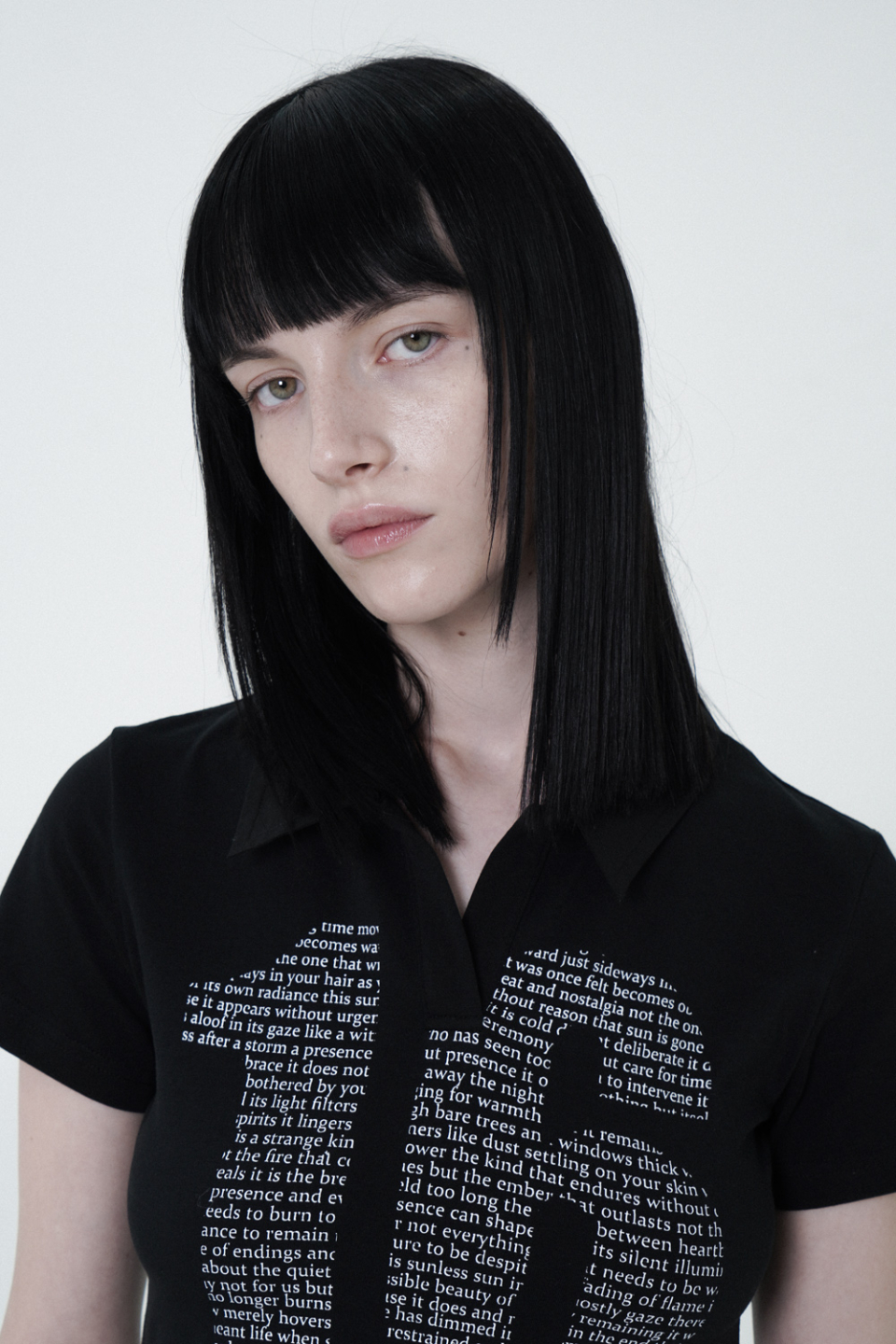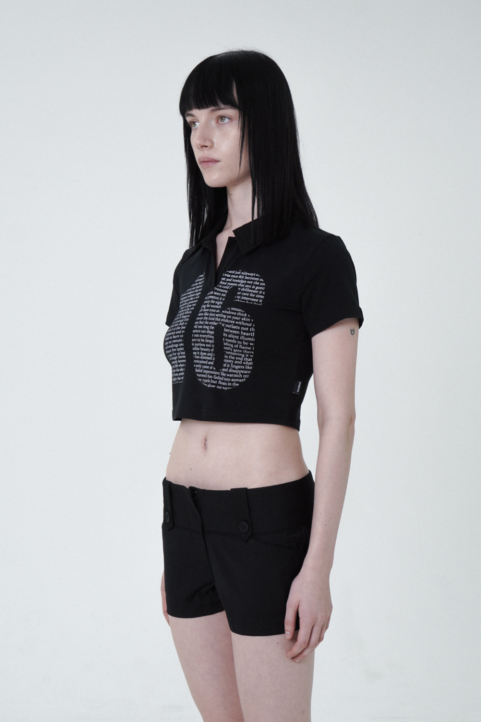 - 크롭 기장의 프린팅 반팔 카라 티셔츠