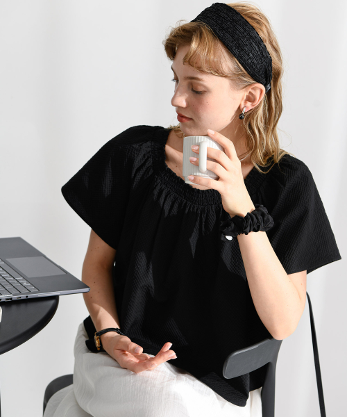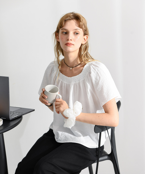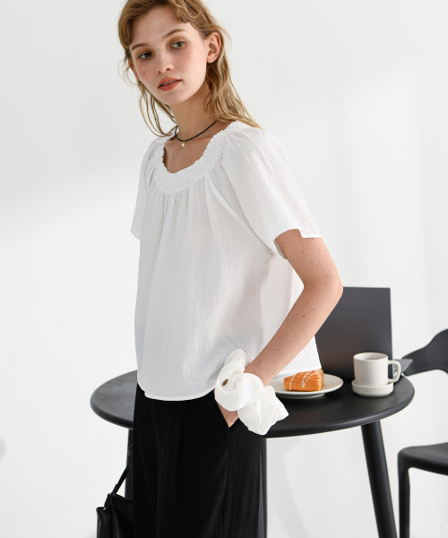 주름스퀘어블라우스 (PBE06M-WBLW013)