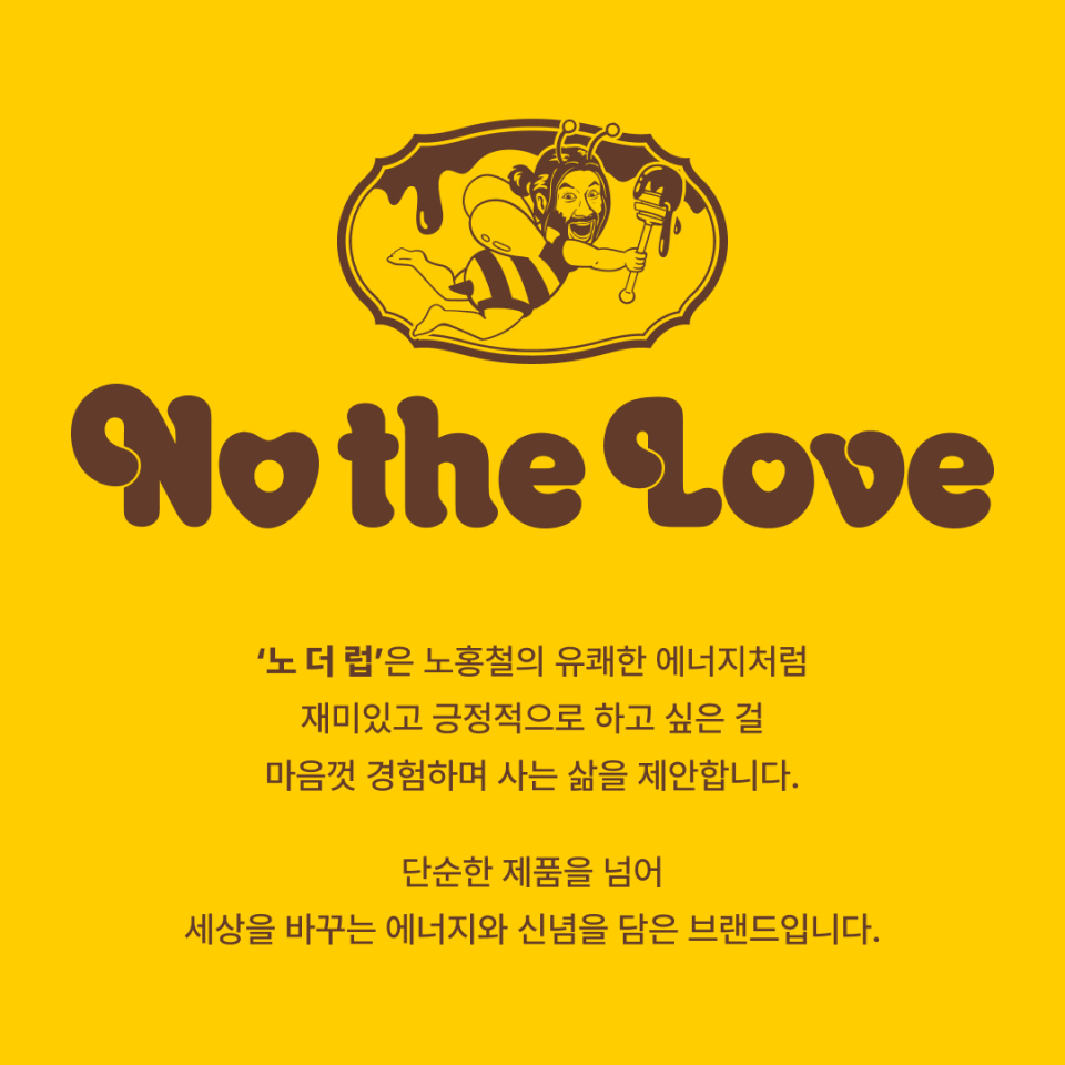 노더럽(NOTHELOVE)은 노홍철님의 에너지처럼 재미있고 긍정적으로, 하고 싶은 걸 경험하며 살아가는 삶의 가치를 담은 브랜드입니다.