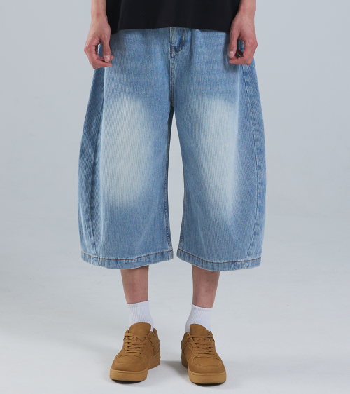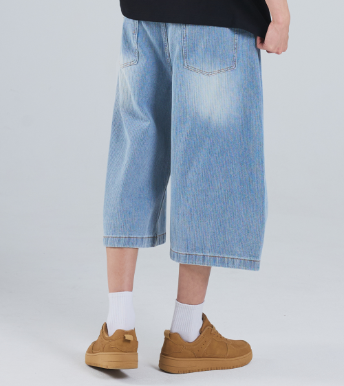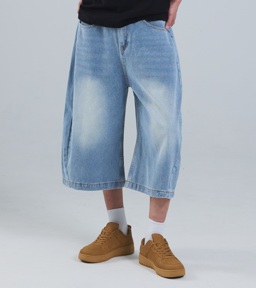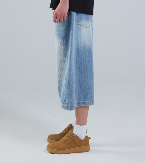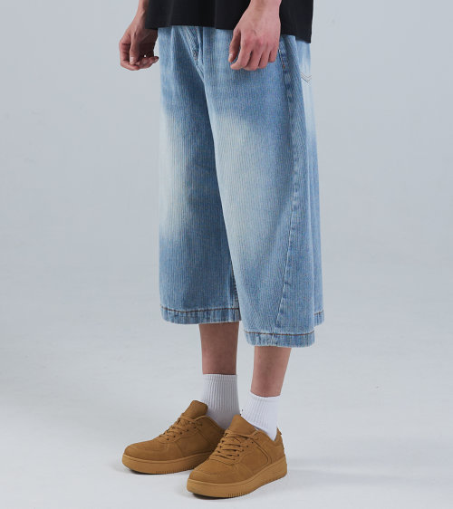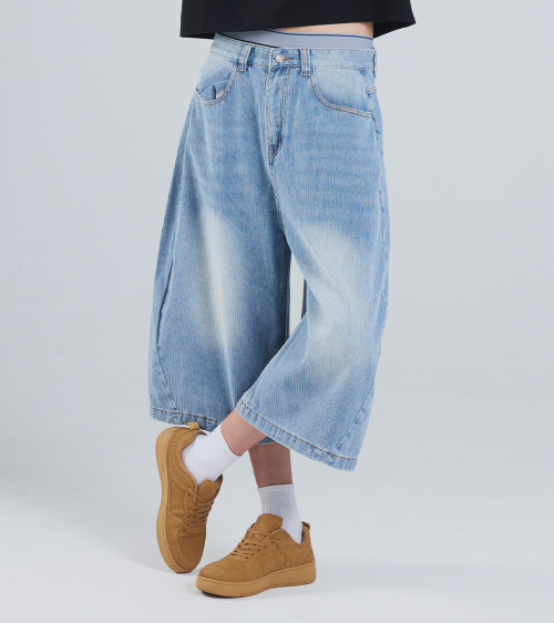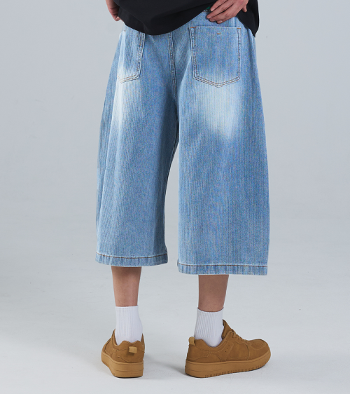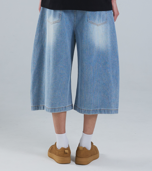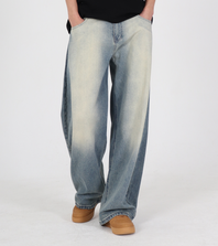 빈티지 페이드 워싱 와이드 커브 데님 팬츠 [더스티 라이트 블루]