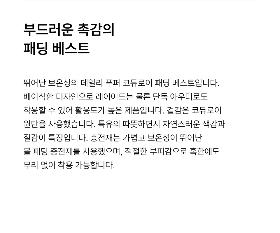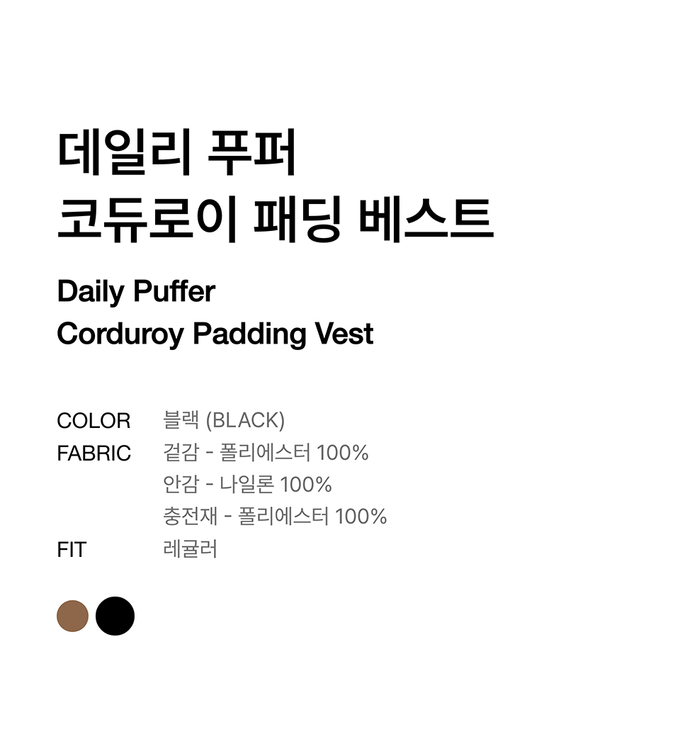 데일리 푸퍼 코듀로이 패딩 베스트 [블랙]