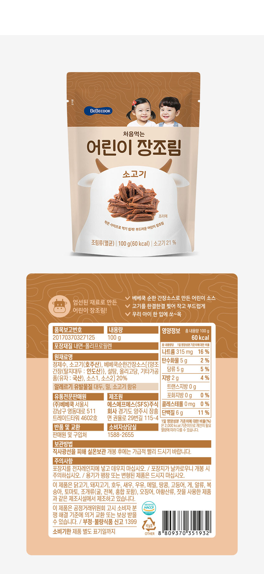 처음먹는 어린이 장조림 소고기 4봉