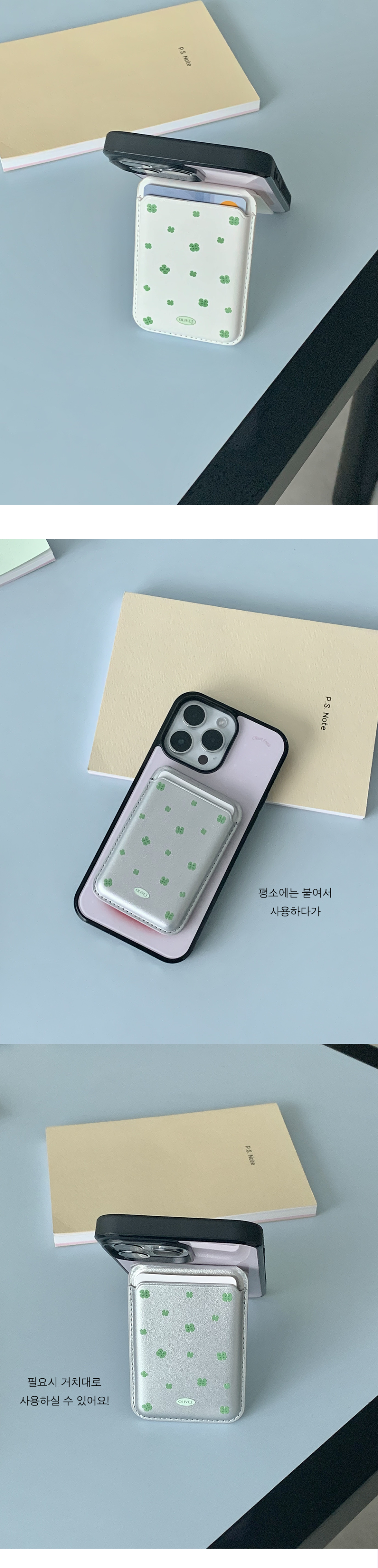 clover pattern magsafe stand wallet (3 colors) 네잎크로버 맥세이프 스탠드 월렛