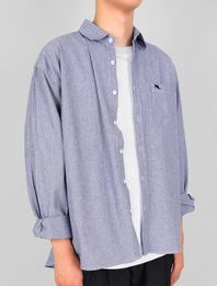 UNISEX 세미오버 핀스트라이프 포켓자수 셔츠 네이비(FCB3SH305M)