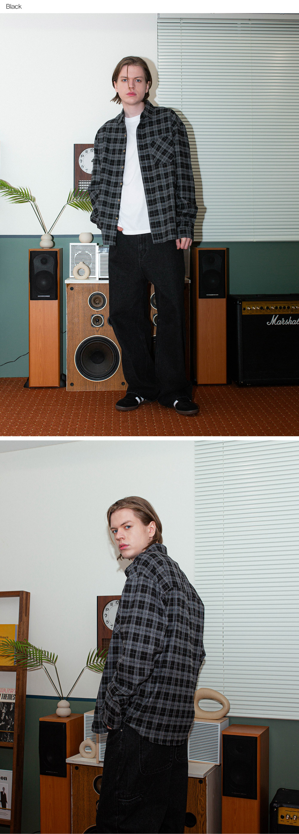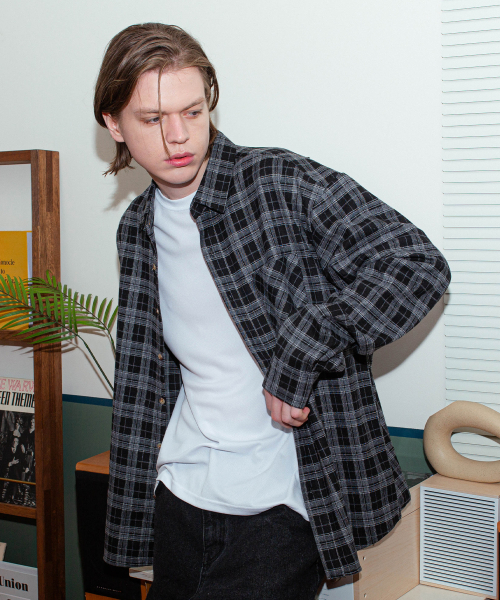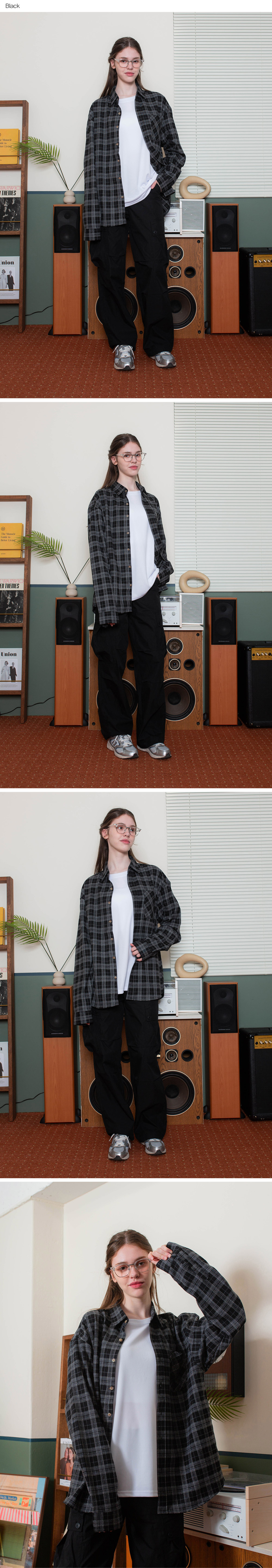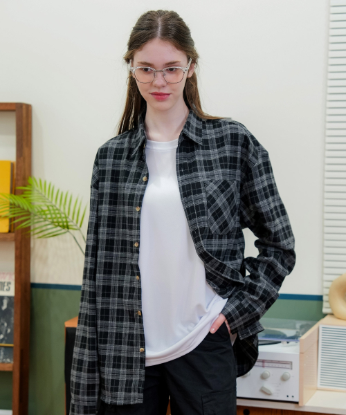 OMBRE 치크 오버핏 긴팔셔츠 GLS-704_블랙
