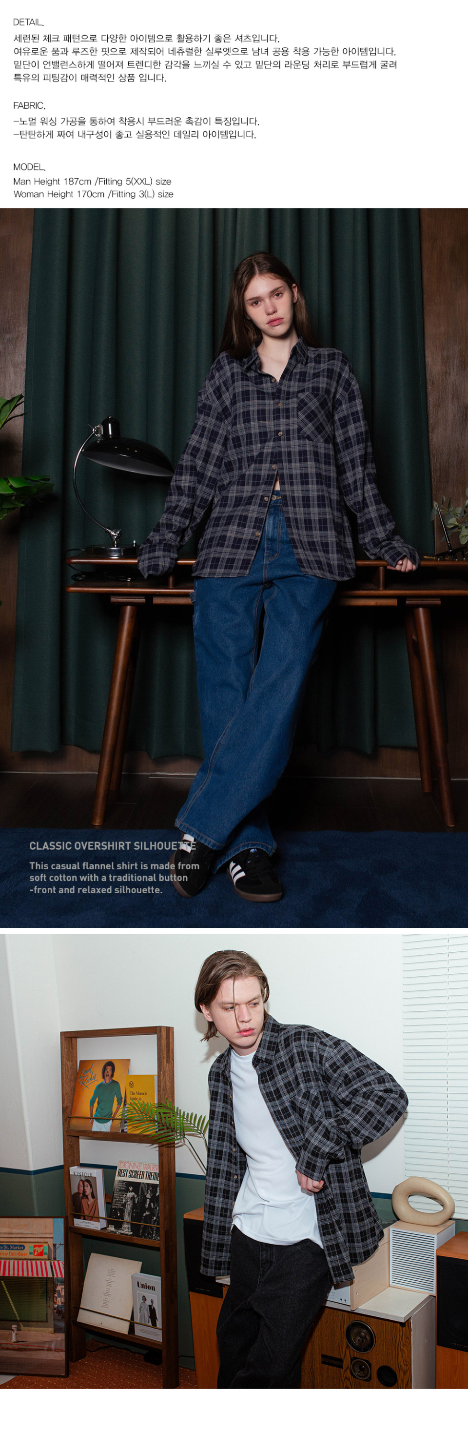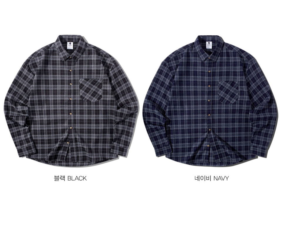 OMBRE 체크 오버핏 긴팔셔츠 GLS-704_네이비