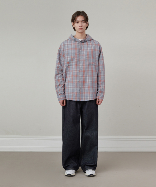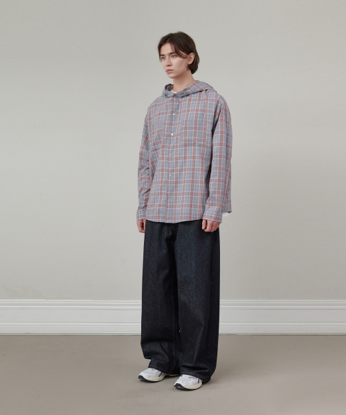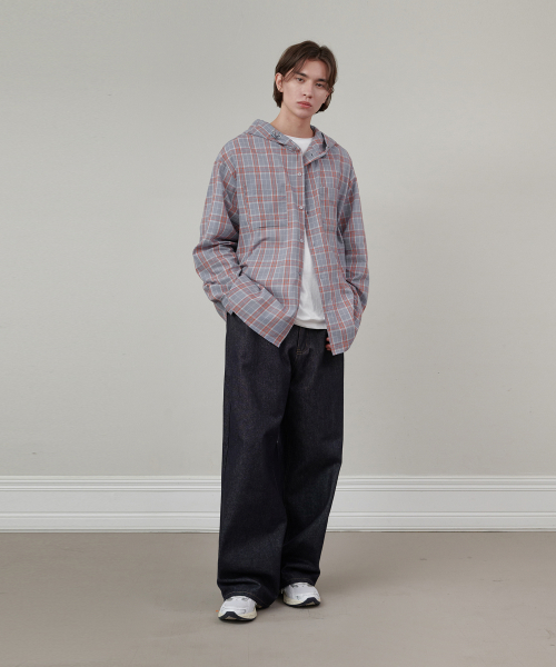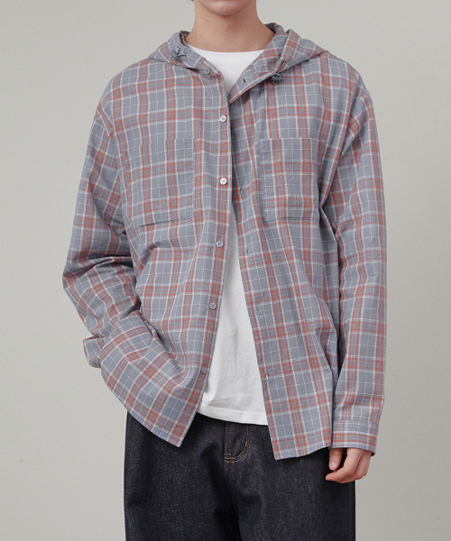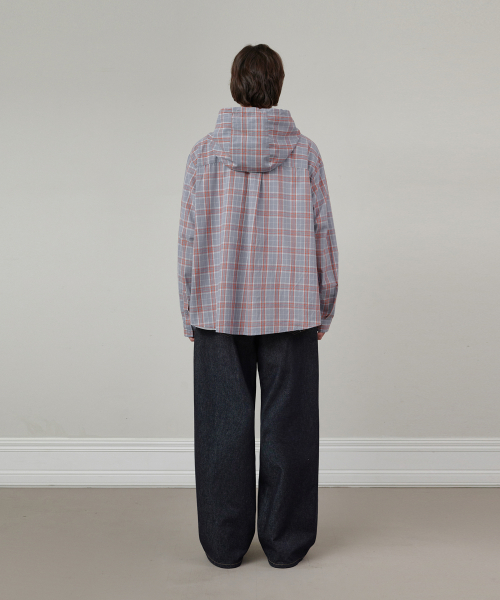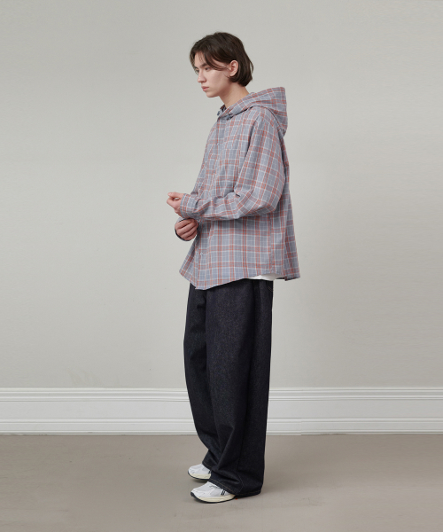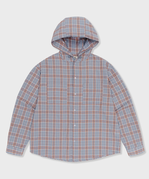 오버핏 체크 후드 셔츠 블루