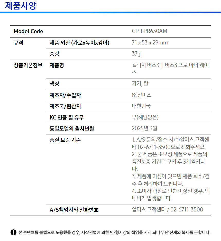 삼성 갤럭시 버즈3 / 3프로 아머 케이스 공용 커버