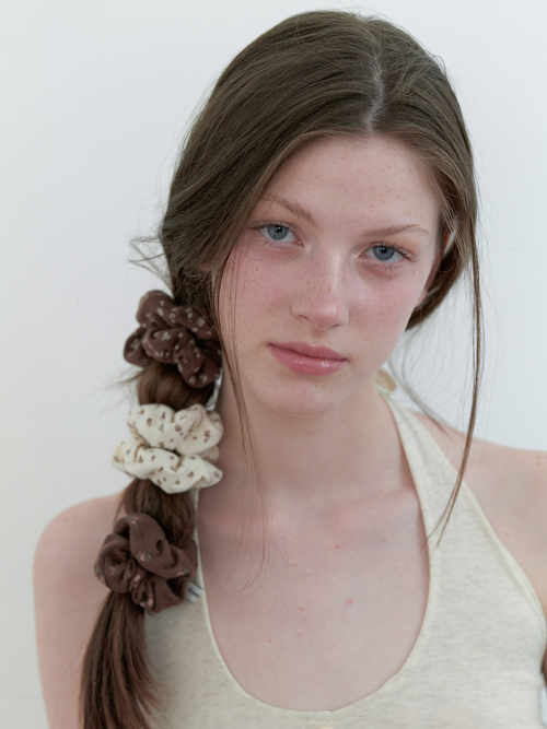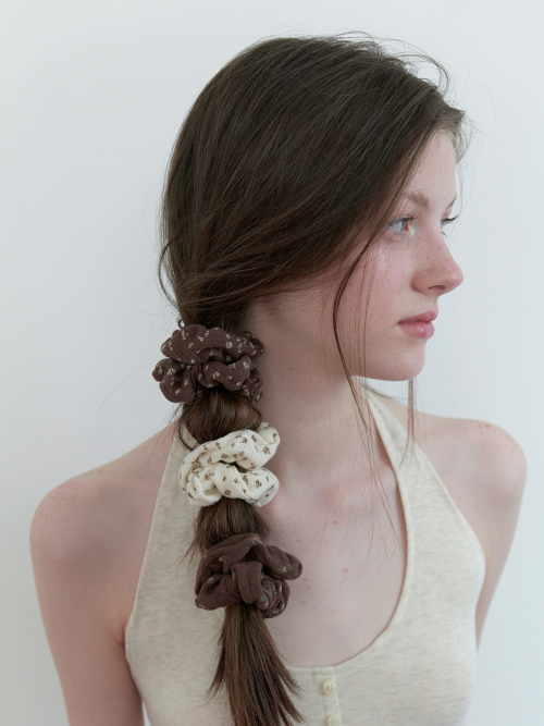 [3set] eyelet mini flower scrunch - brownie
