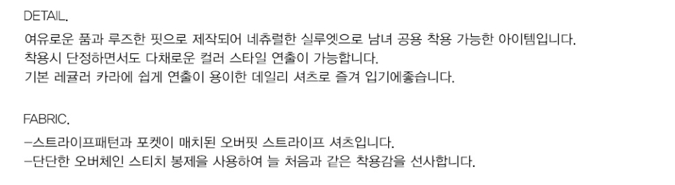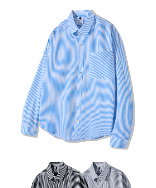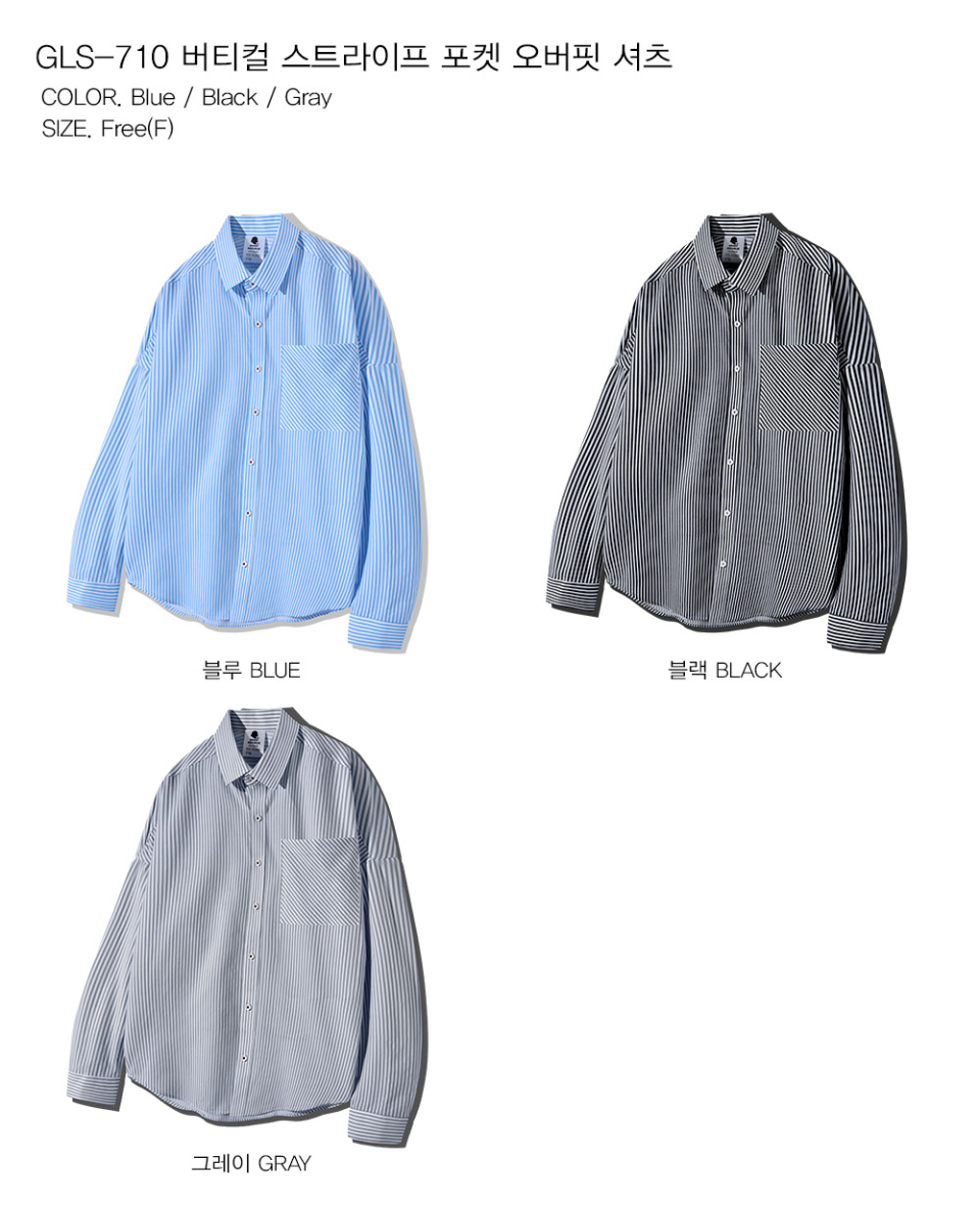 버티컬 스트라이프 포켓 오버핏 셔츠 GLS-710