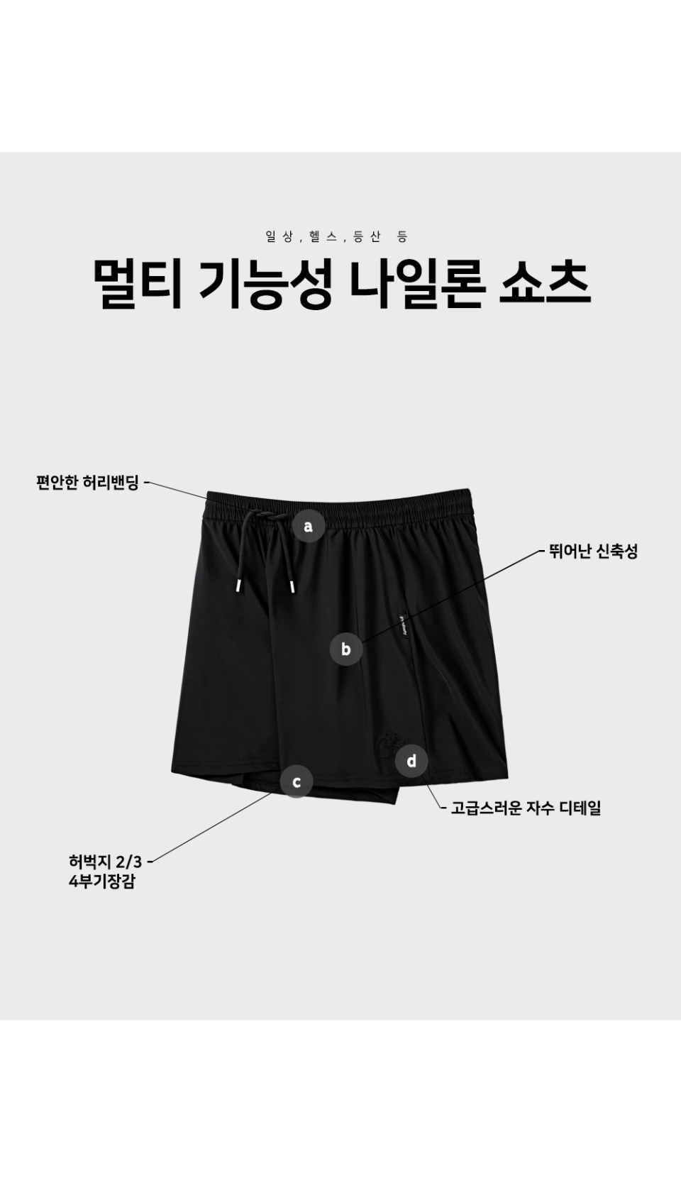 쿨링 나일론 5인치 스트레치 쇼츠 (딥차콜)