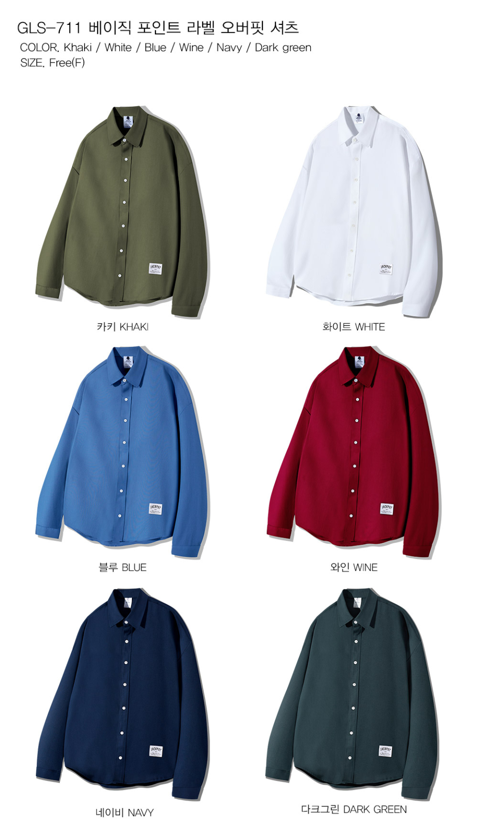 베이직 포인트 라벨 오버핏 셔츠 GLS-711
