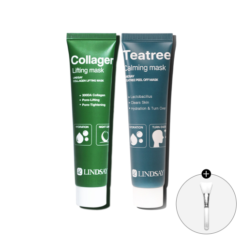 쿨링 진정 보습 턴오버 티트리 카밍 마스크 필오프팩+콜라겐 리프팅 랩핑 마스크 결광팩+실리콘 팩브러쉬 증정