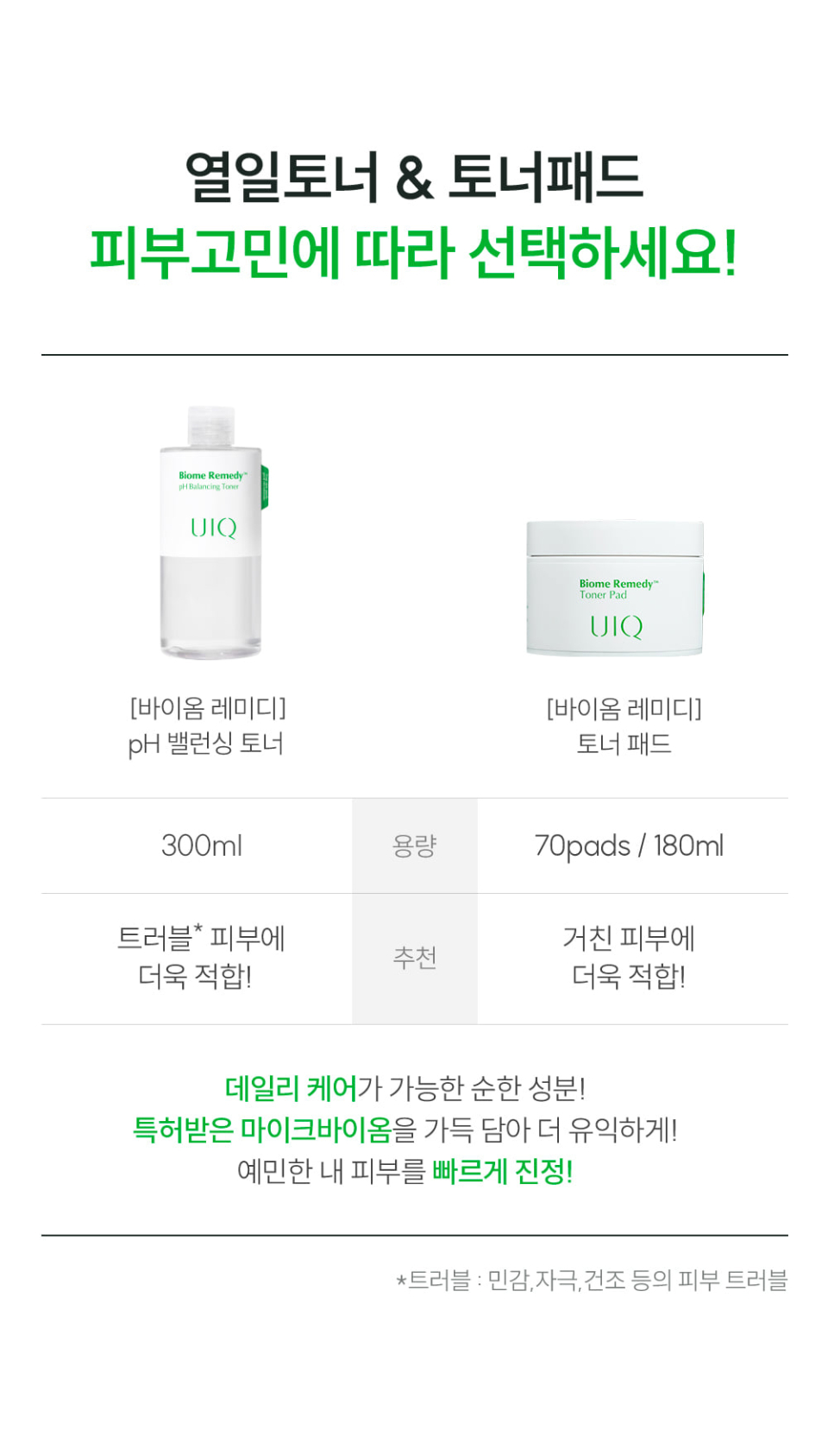 유이크(UIQ)는 피부 건강의 근원을 탐구합니다. 독자 개발한 스킨 마이크로바이옴 원료를 기본으로 고객의 유의미한 피부 변화를 위해 연구하고 탐구하는 스킨케어 브랜드입니다.
