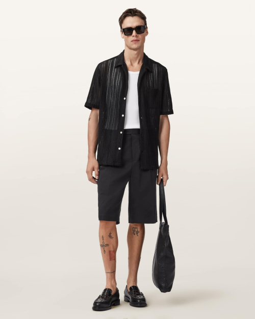 단정한 핏 속에 숨겨진 여유. 플리츠 디테일과 슬럽 텍스처가 돋보이는 이 쇼츠는 격식 있는 날에도, 일상에도 자연스럽게 어울립니다. AllSaints 특유의 미니멀 감각을 담아냈어요.