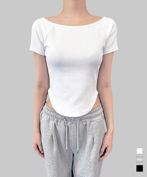 골반 위 허리 옆 라인부터 완연한 라운드로 떨어지는 세미 크롭 기장