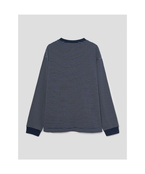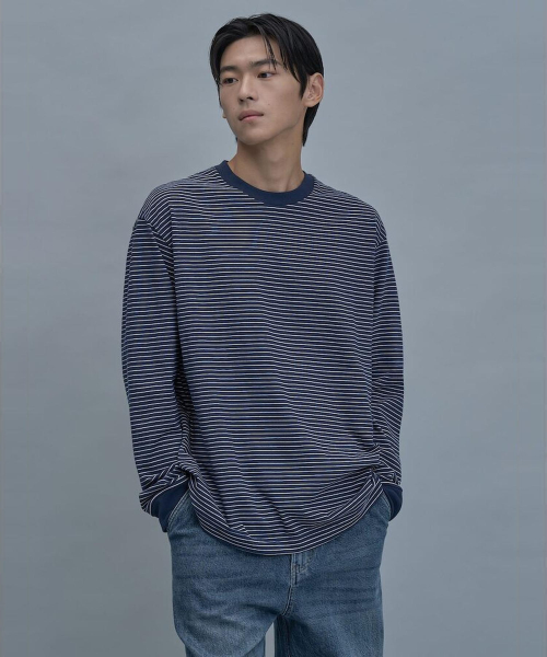 유행을 타지 않는 심플한 스트라이프 패턴으로 제작된 베이직 스트라이프 긴팔 티셔츠입니다. 루즈핏 스타일로 제작되어 트렌디하게 연출 가능하며, 코디가 쉬운 컬러감으로 데일리로 활용하기 좋습니다.