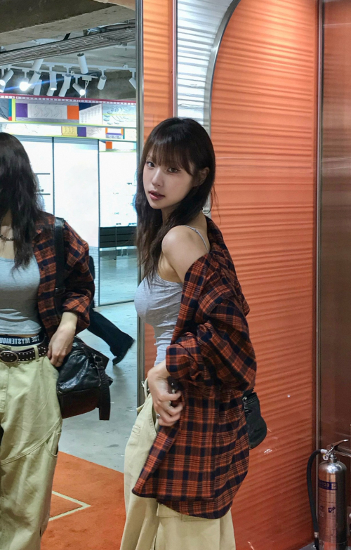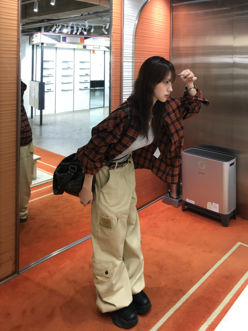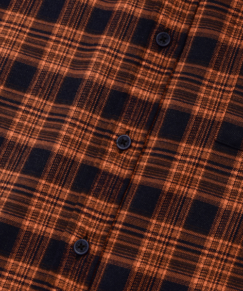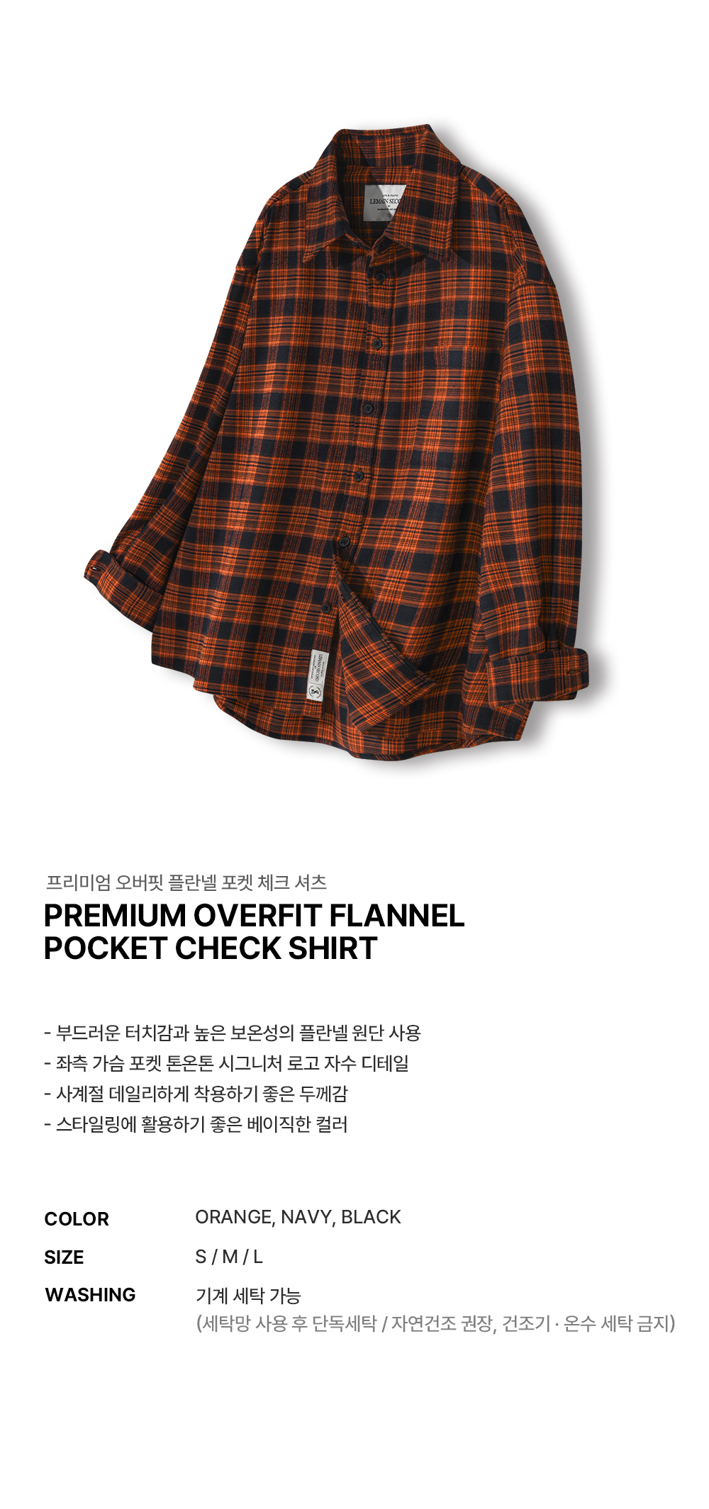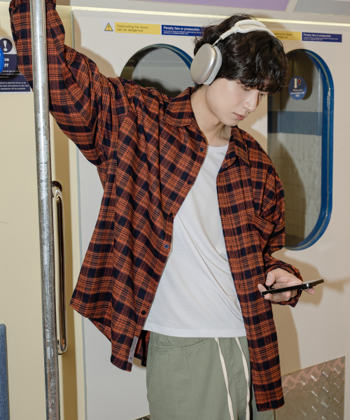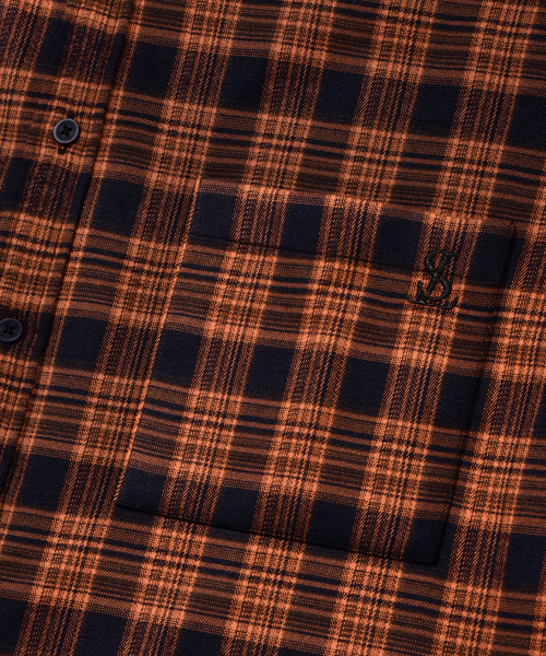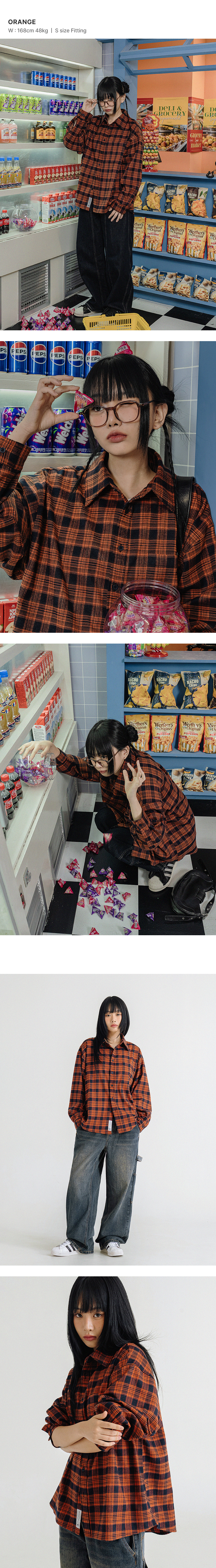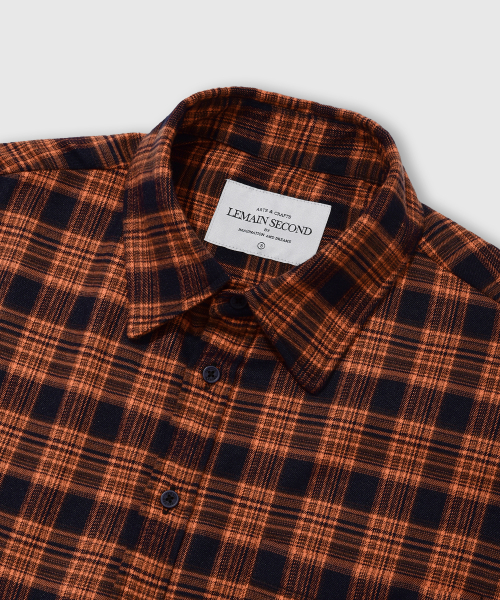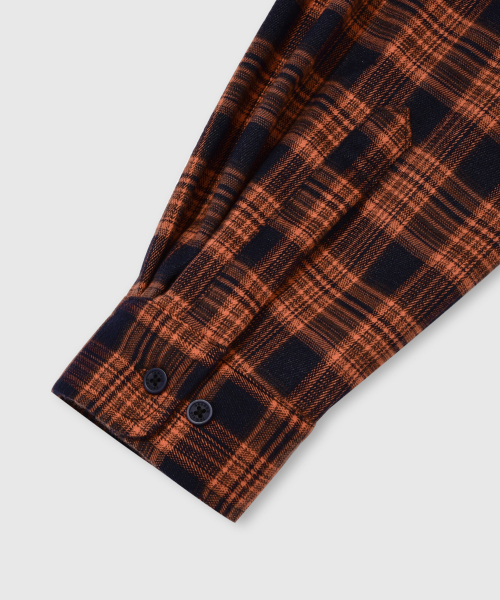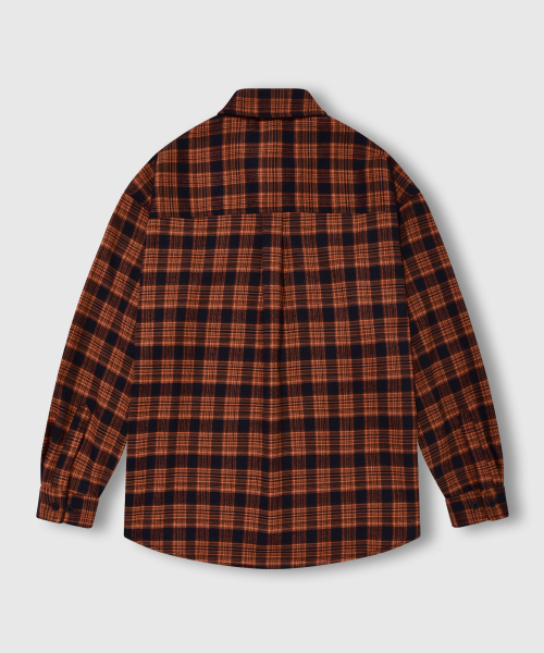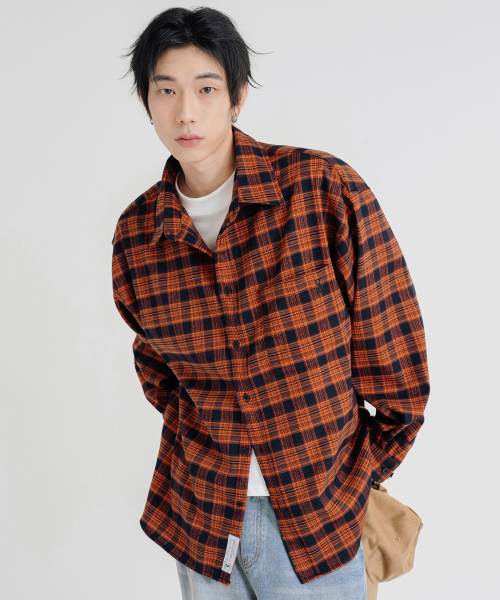 프리미엄 오버핏 플란넬 포켓 체크 셔츠 [오렌지]