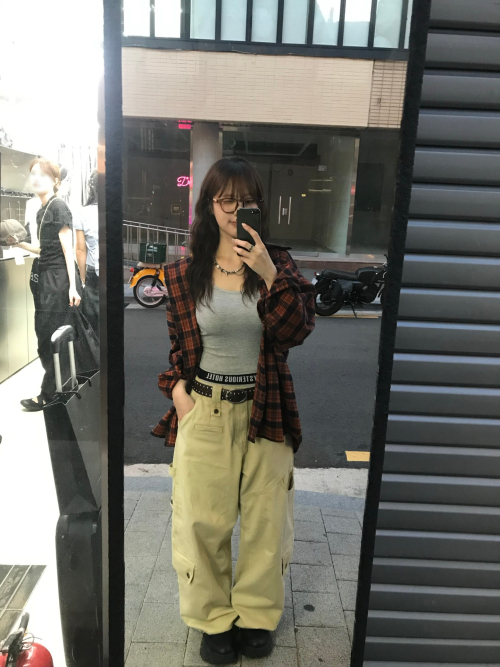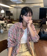 오버핏 플란넬 포켓 체크 셔츠 [딥핑크]