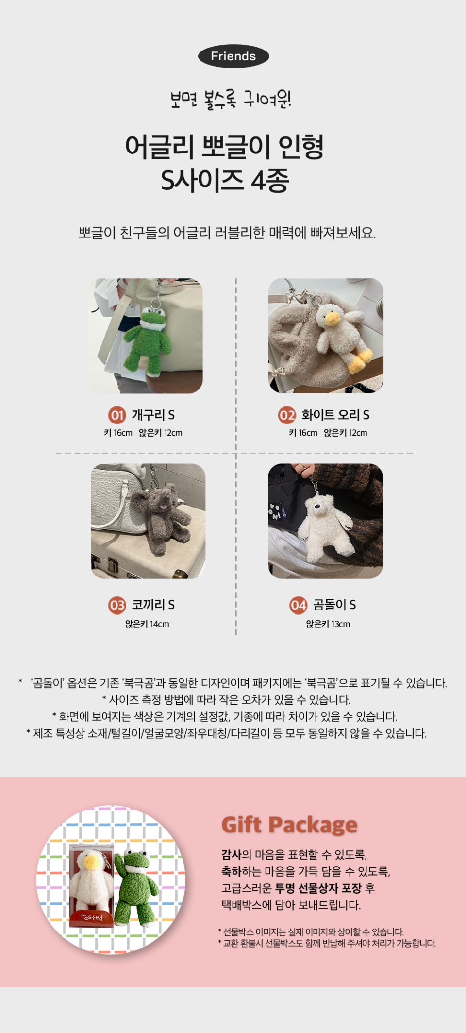 어글리 뽀글이 인형 S 개구리 키링인형 열쇠고리 (OPP비닐 포장)