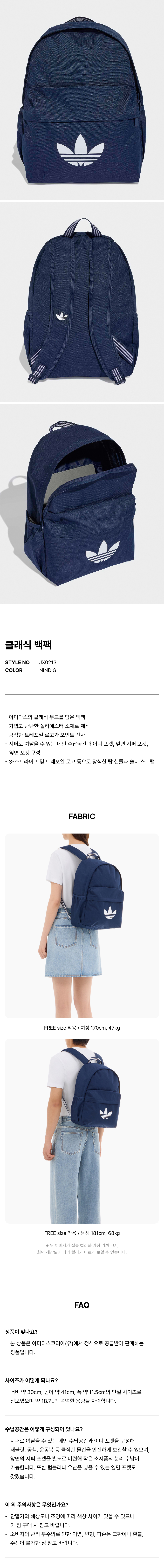 클래식 백팩 - 나이트인디고 / JX0213