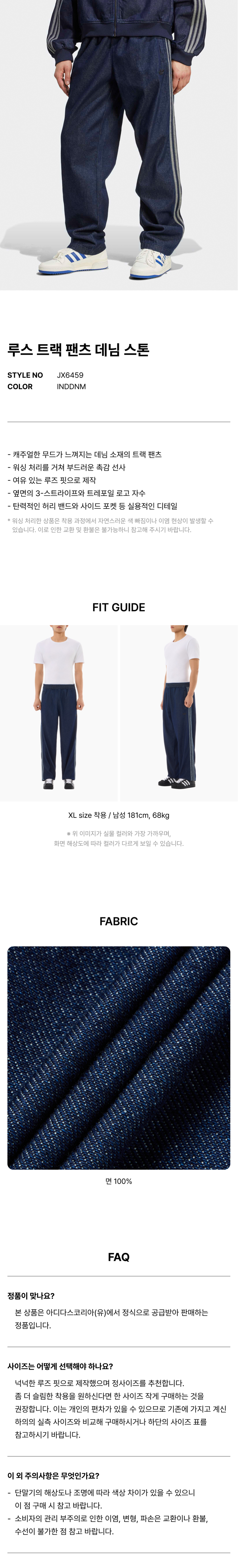 루스 트랙 팬츠 데님 스톤 - 인디고데님 / JX6459