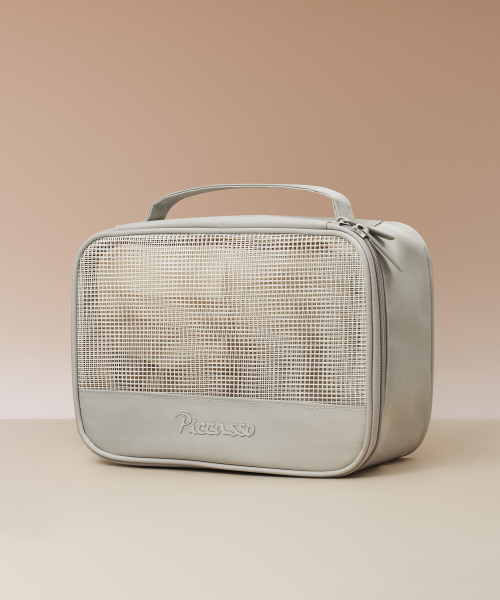 스퀘어 메쉬 파우치 웜그레이