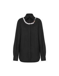 하이 넥 스트라이프 자카드 코튼 셔츠
