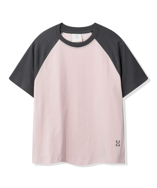 (우먼) 레글런 배색 반소매 티셔츠_핑크