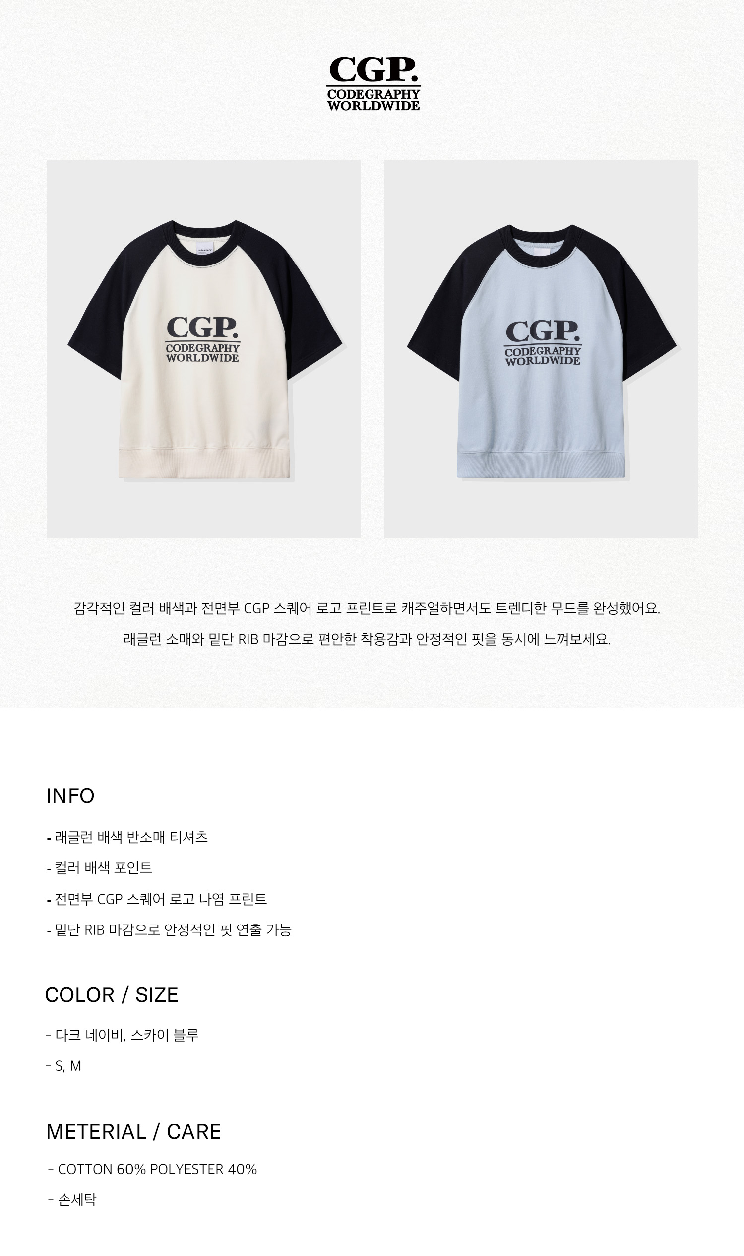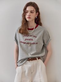 배색 라운드넥 레터링 반팔 티셔츠