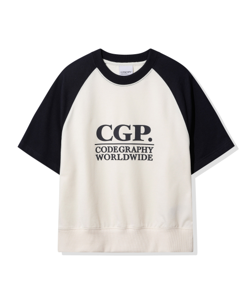 (우먼) 스퀘어 로고 배색 반소매 맨투맨_네이비
