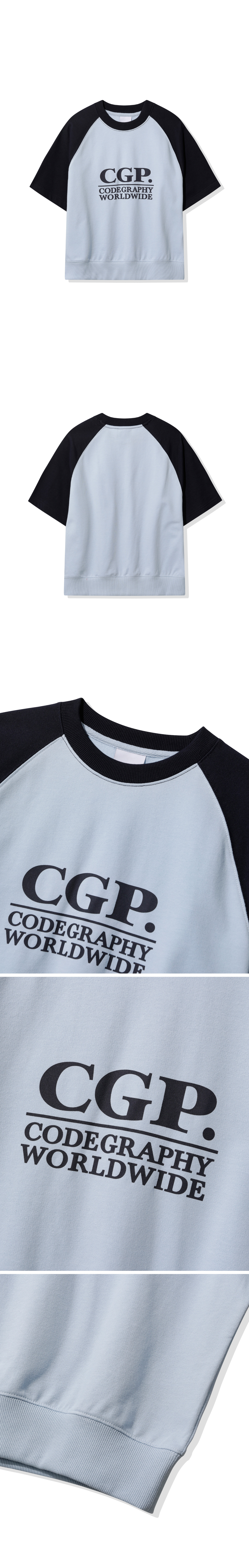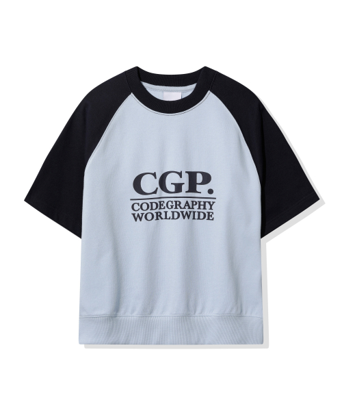(우먼) 스퀘어 로고 배색 반소매 맨투맨_스카이블루