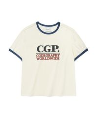 (우먼) 스퀘어 로고 링거 반소매 티셔츠_크림