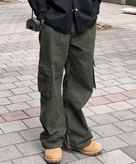 [시티 레저] 와이드 벨티드 카고 팬츠 [카키]