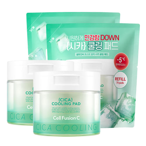 시카쿨링패드 70매 2개 + 시카쿨링리필파우치 70매 2개