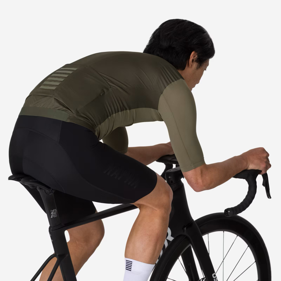 소재 - 이탈리아에서 제작된 앞면 바디 원단이 높은 신축성으로 최적화된 라이딩 핏 구현