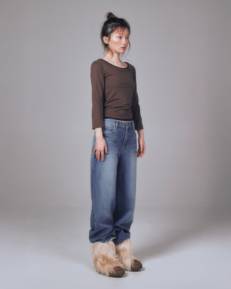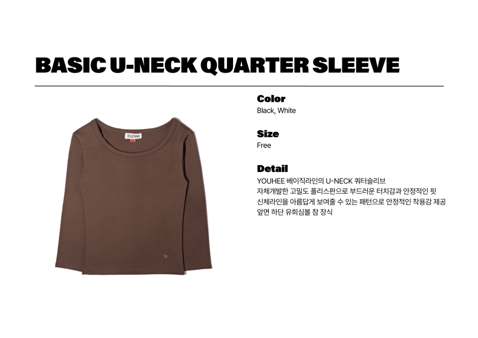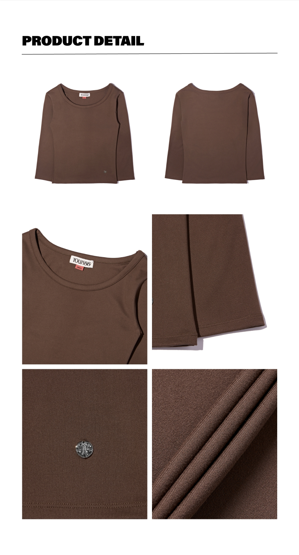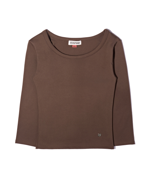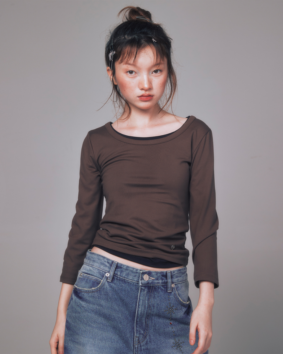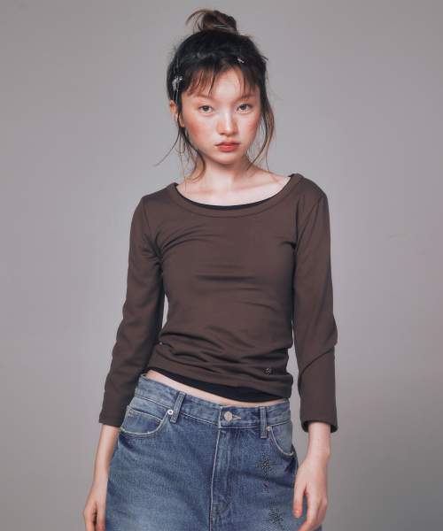 BASIC U-NECK QUARTER SLEEVE BROWN