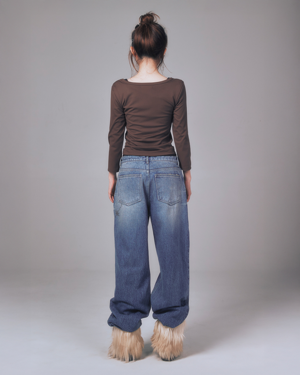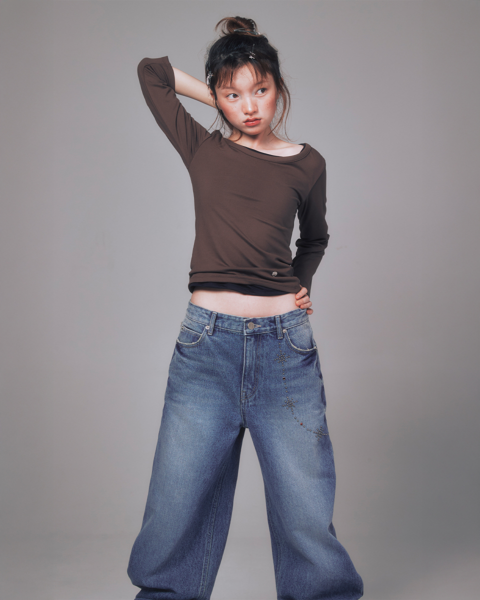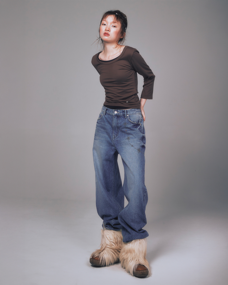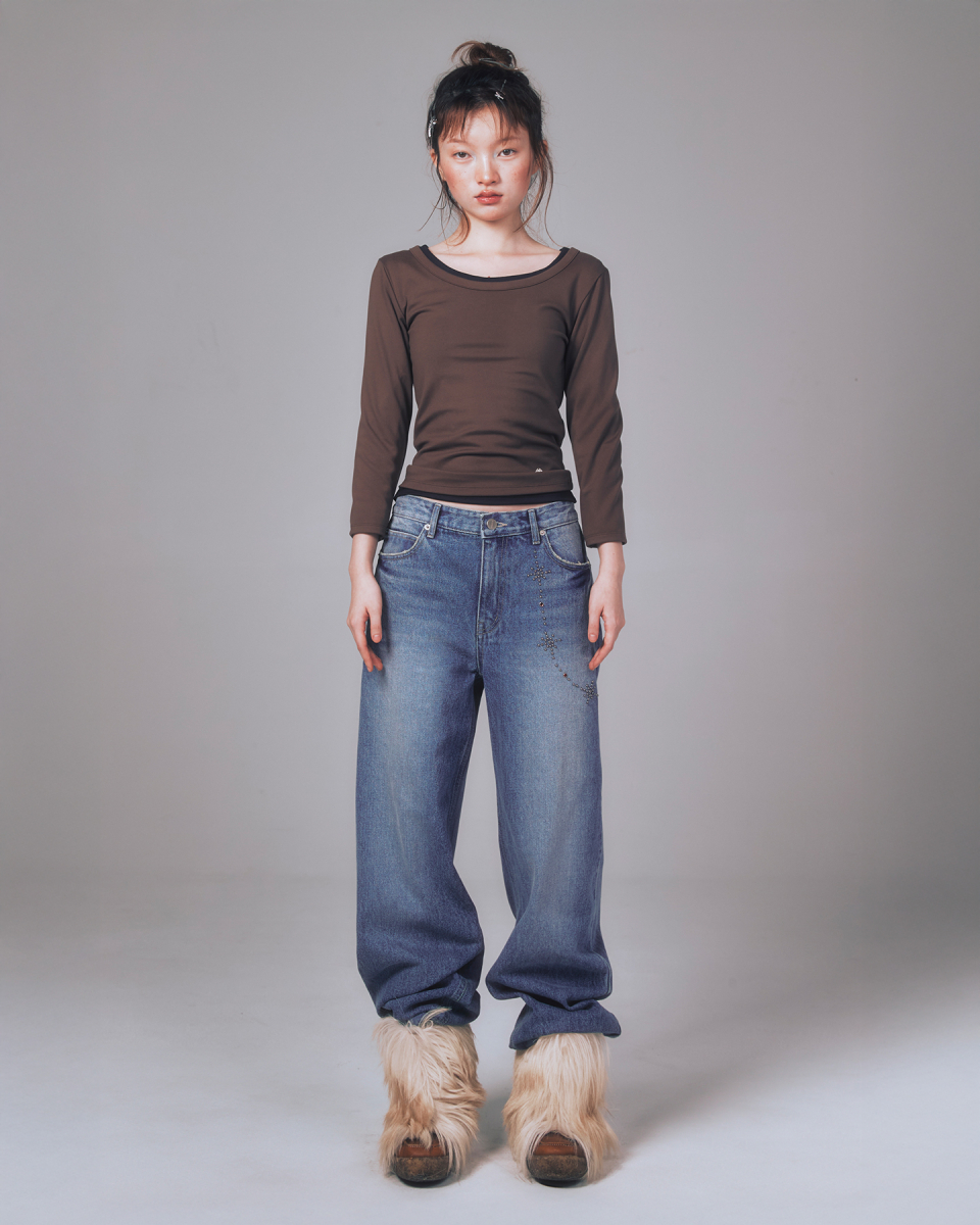 BASIC U-NECK QUARTER SLEEVE BROWN