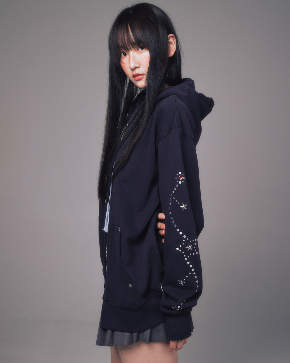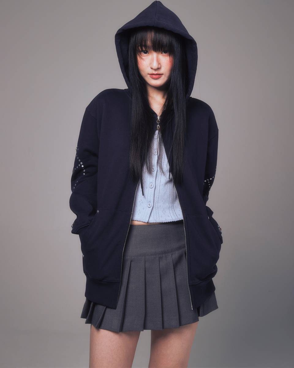 STAR PATCH HOOD ZIP-UP [HEATHER GREY]
