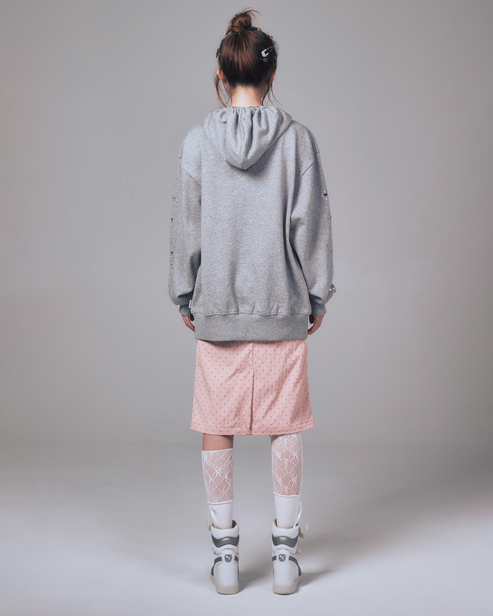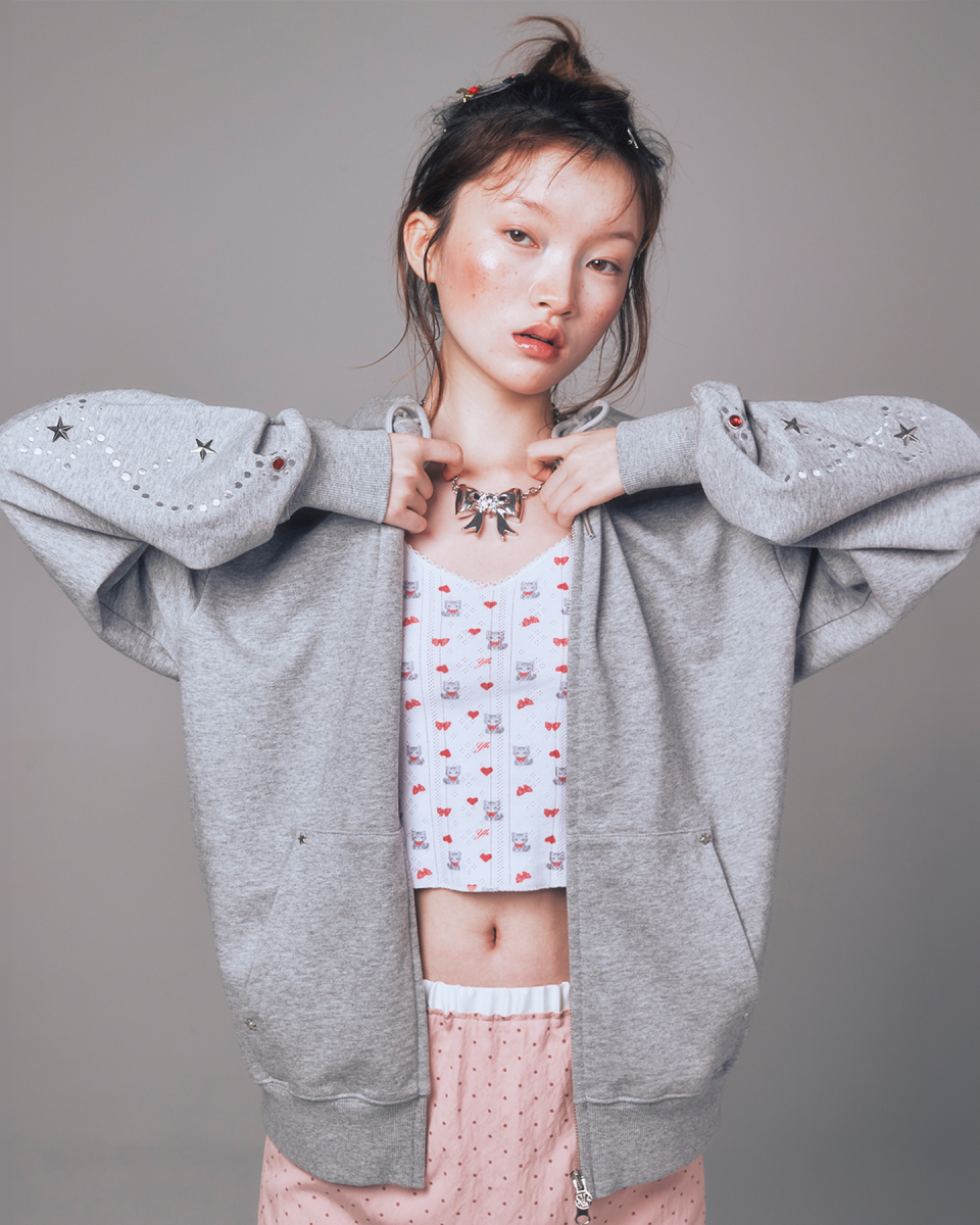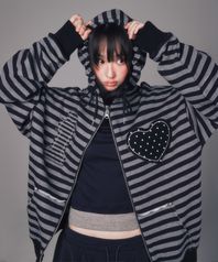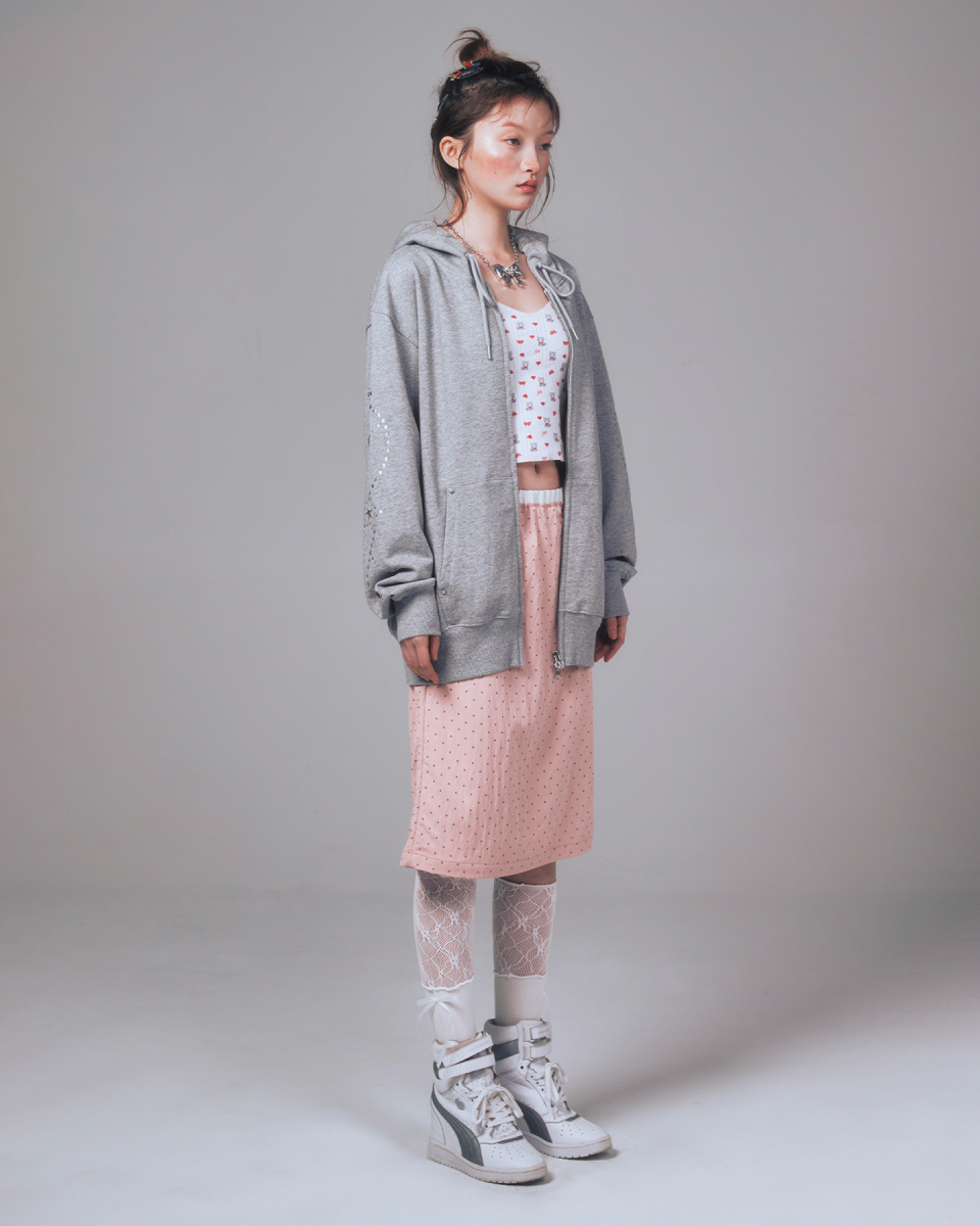 I LOVE APPLIQUE HOOD ZIP-UP CHARCOAL