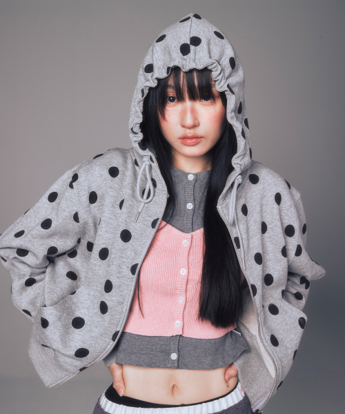 [송이송이 PICK] FLOWER PATTERN HOOD ZIP-UP_MELANGE GREY