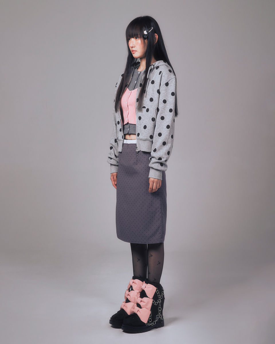 I LOVE APPLIQUE HOOD ZIP-UP CHARCOAL