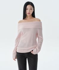 우먼즈 턴 다운 오프 숄더 니트 [로즈 워터]