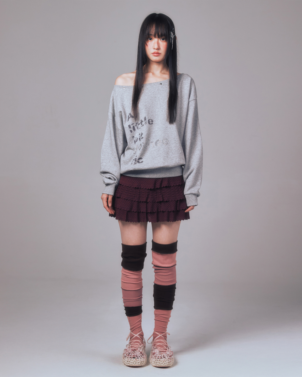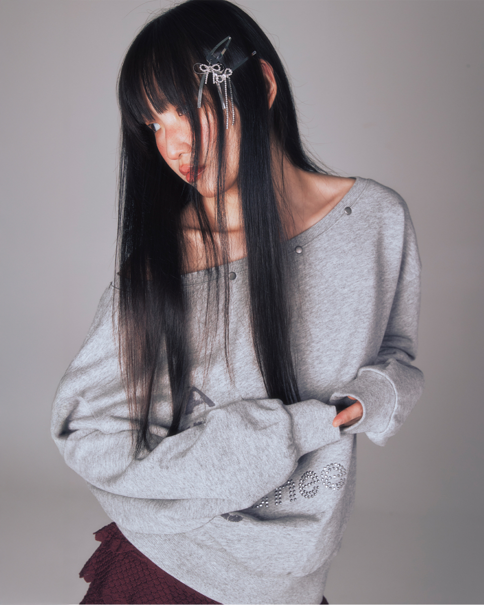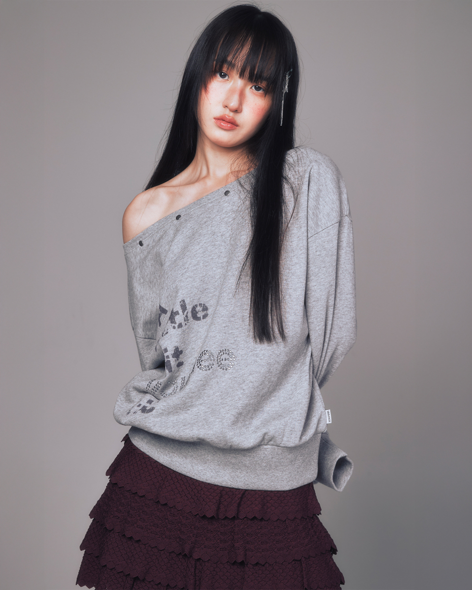 YOUHEETIC HOTFIX OFF-SHOULDER SWEATSHIRTS MELANGE GREY