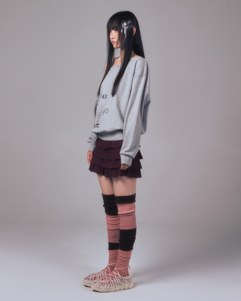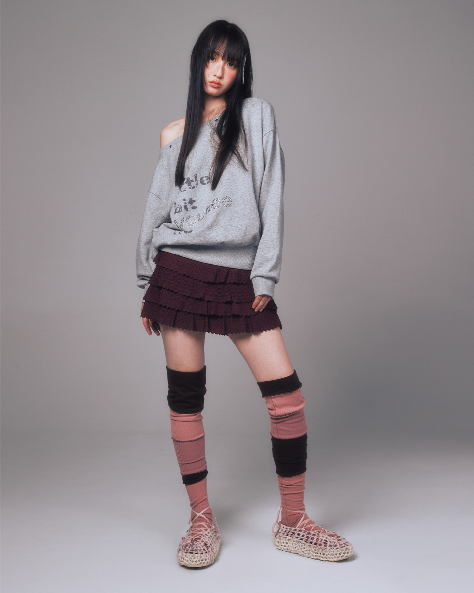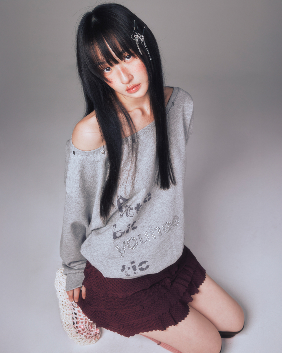YOUHEETIC HOTFIX OFF-SHOULDER SWEATSHIRTS MELANGE GREY