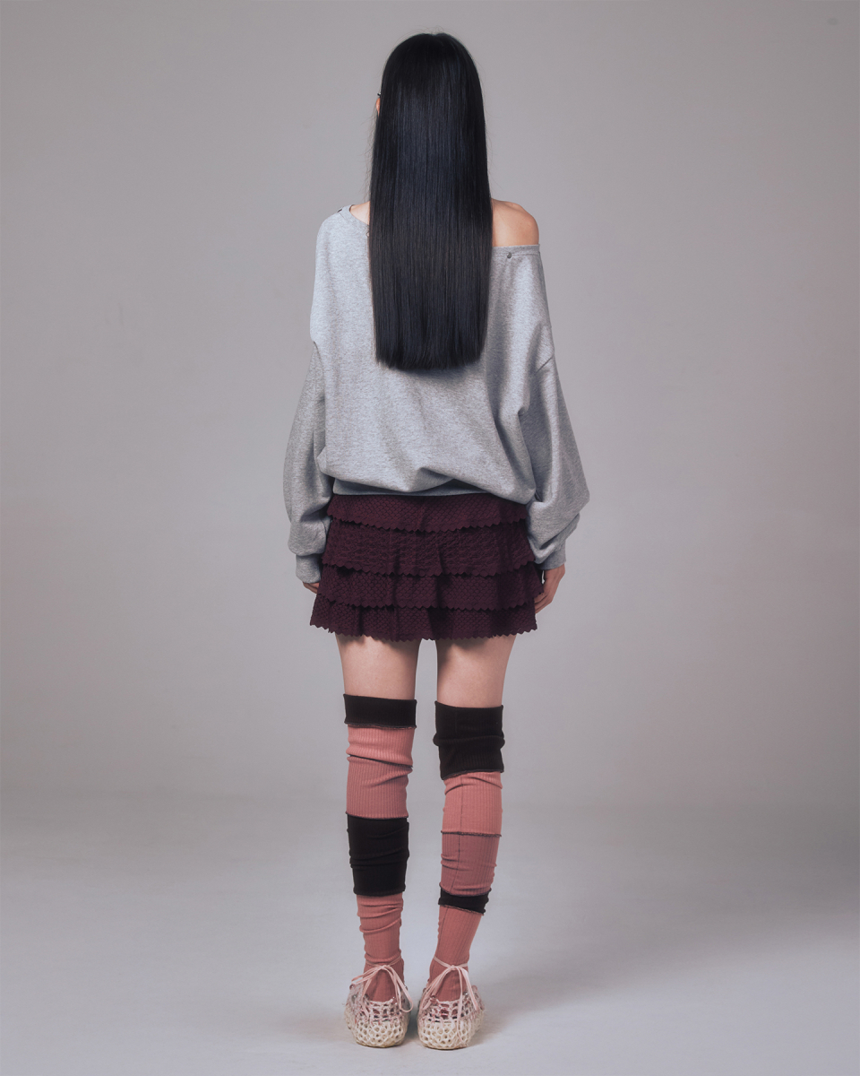 퓨어 보우 오프숄더 맨투맨 핑크