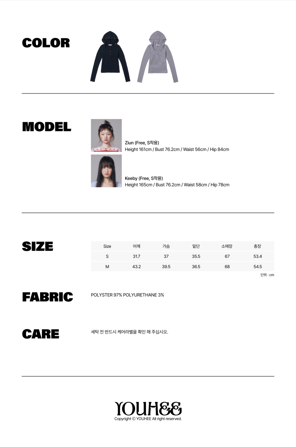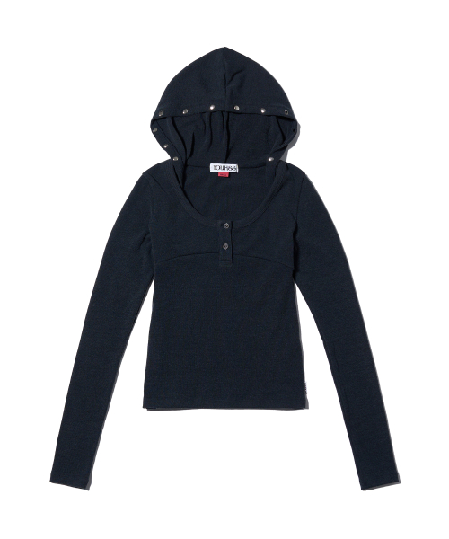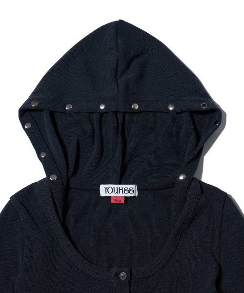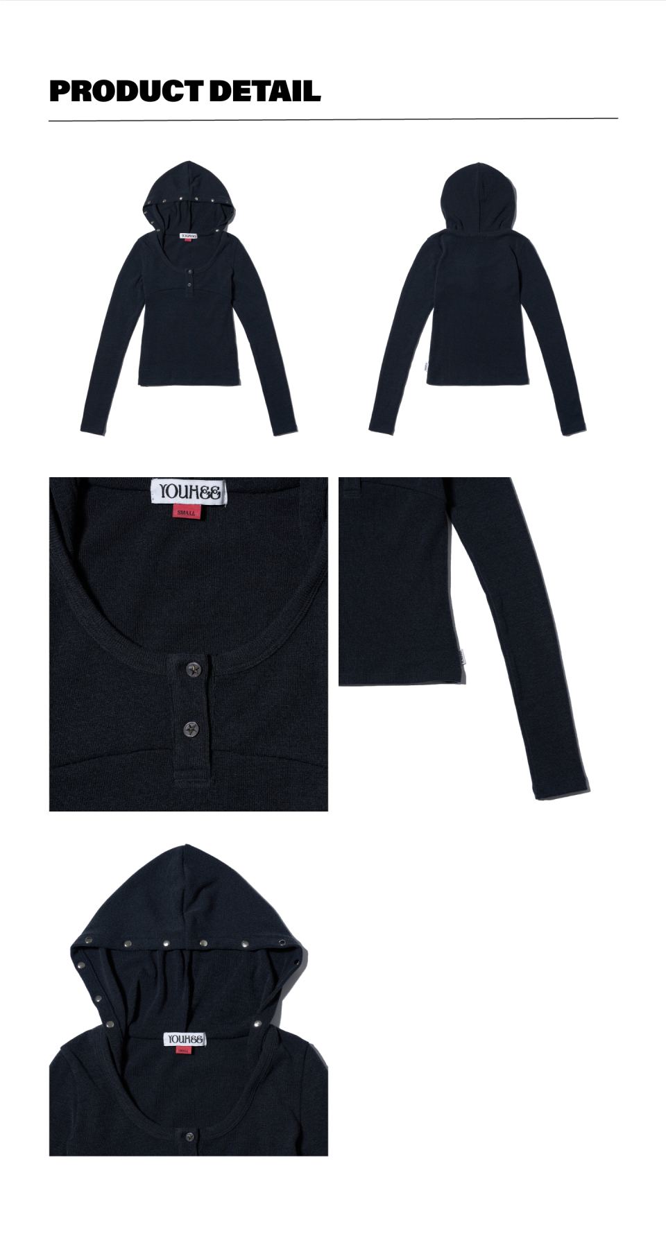 BUTTON CUFF HOODIE LONG SLEEVE BLACK